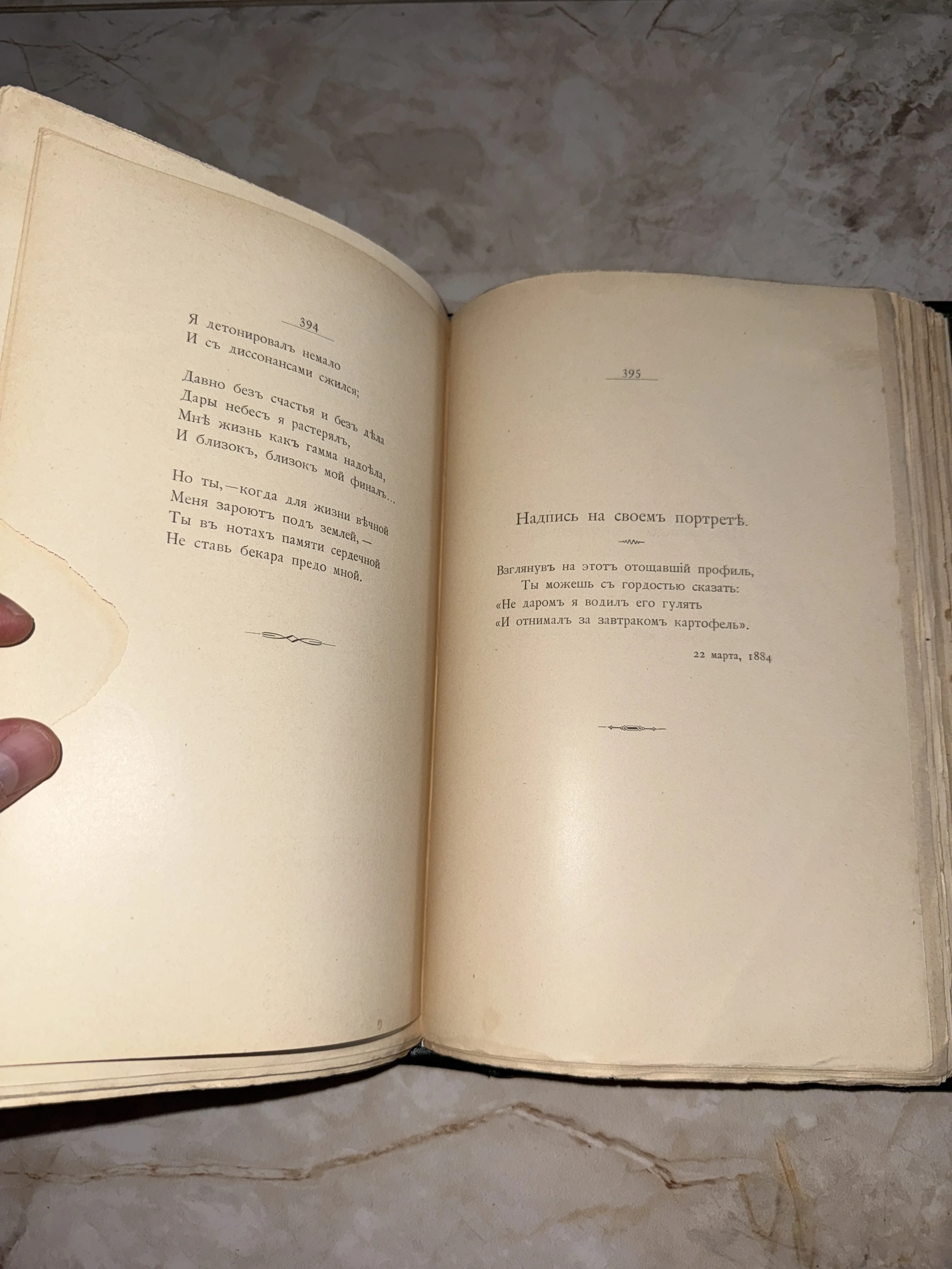 Разворот старинной книги со стихотворениями на дореволюционном русском языке, страницы 394 и 395.