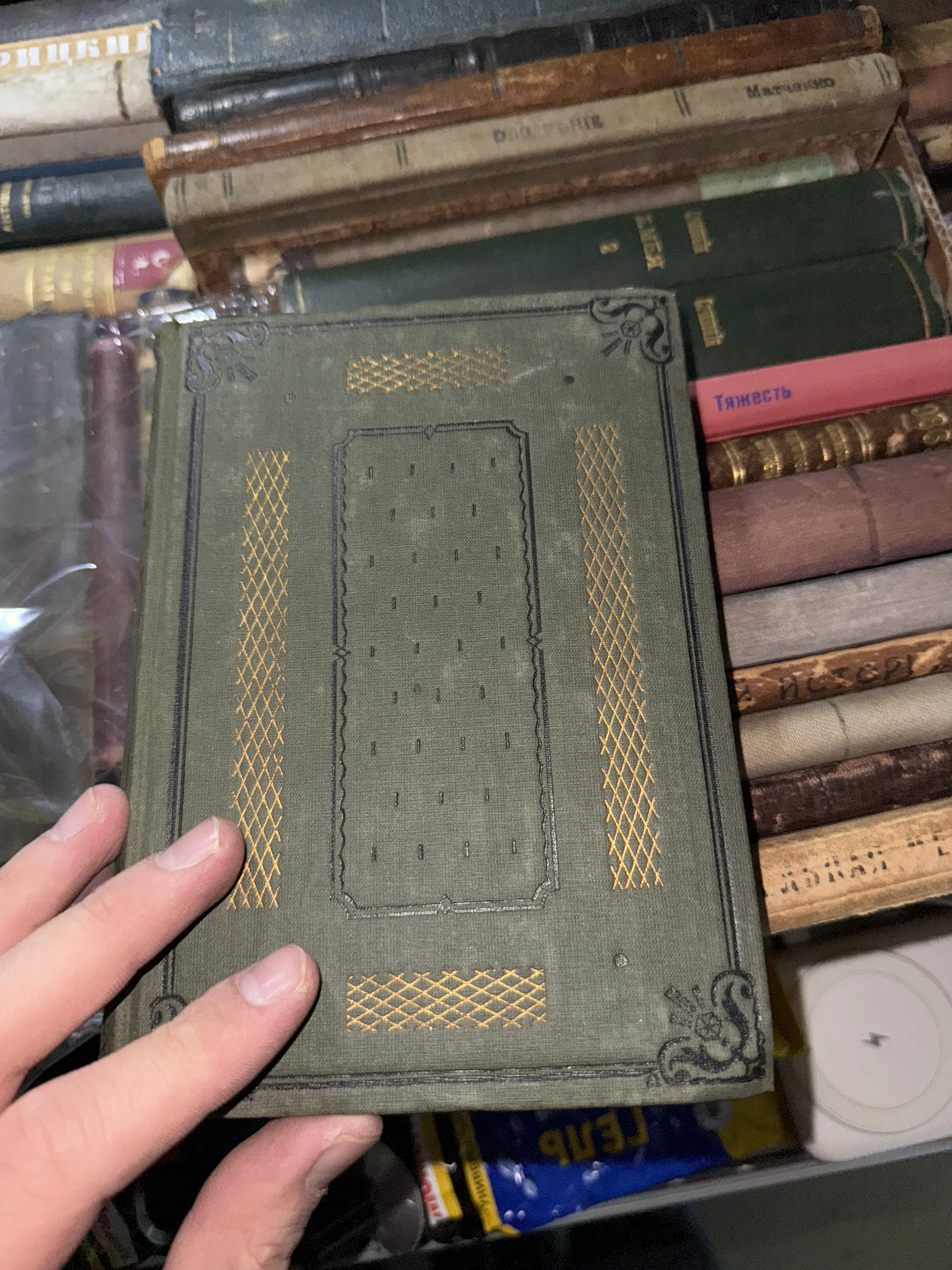Старинная книга в темно-зеленом переплете с золотым тиснением