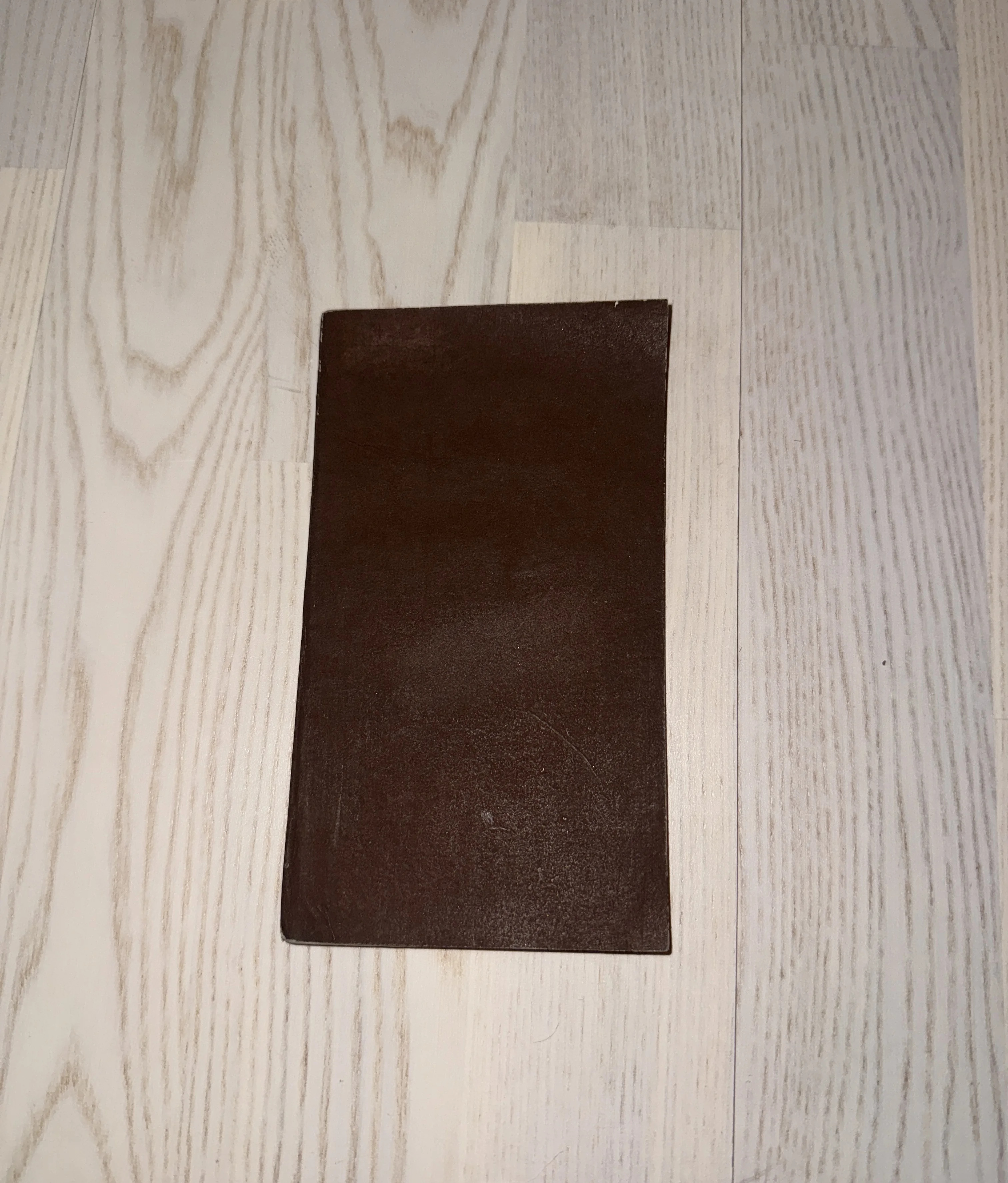 Старинная книга или папка в темно-коричневой кожаной обложке на светлом деревянном полу.