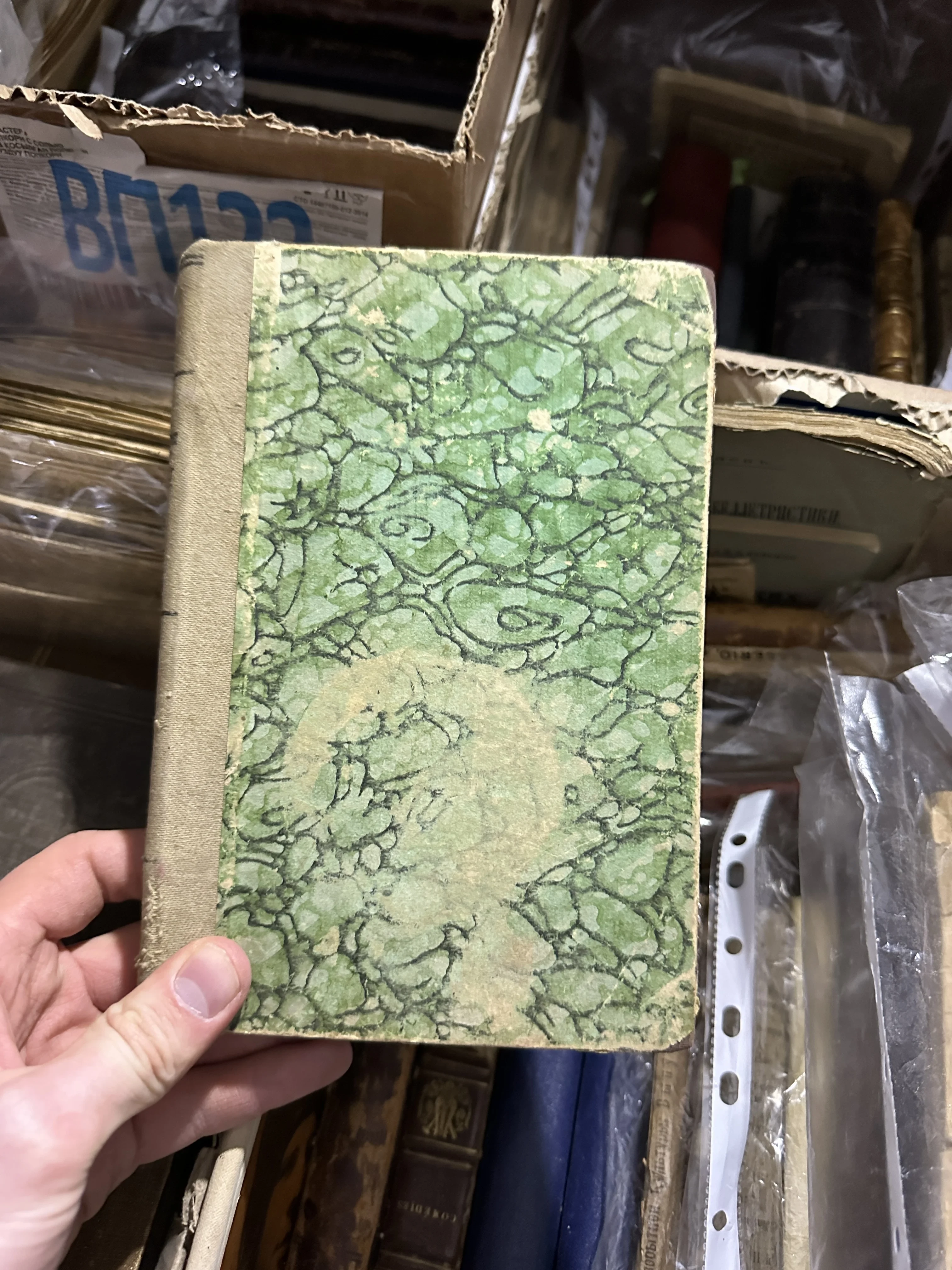 Старинная книга в мраморном переплете