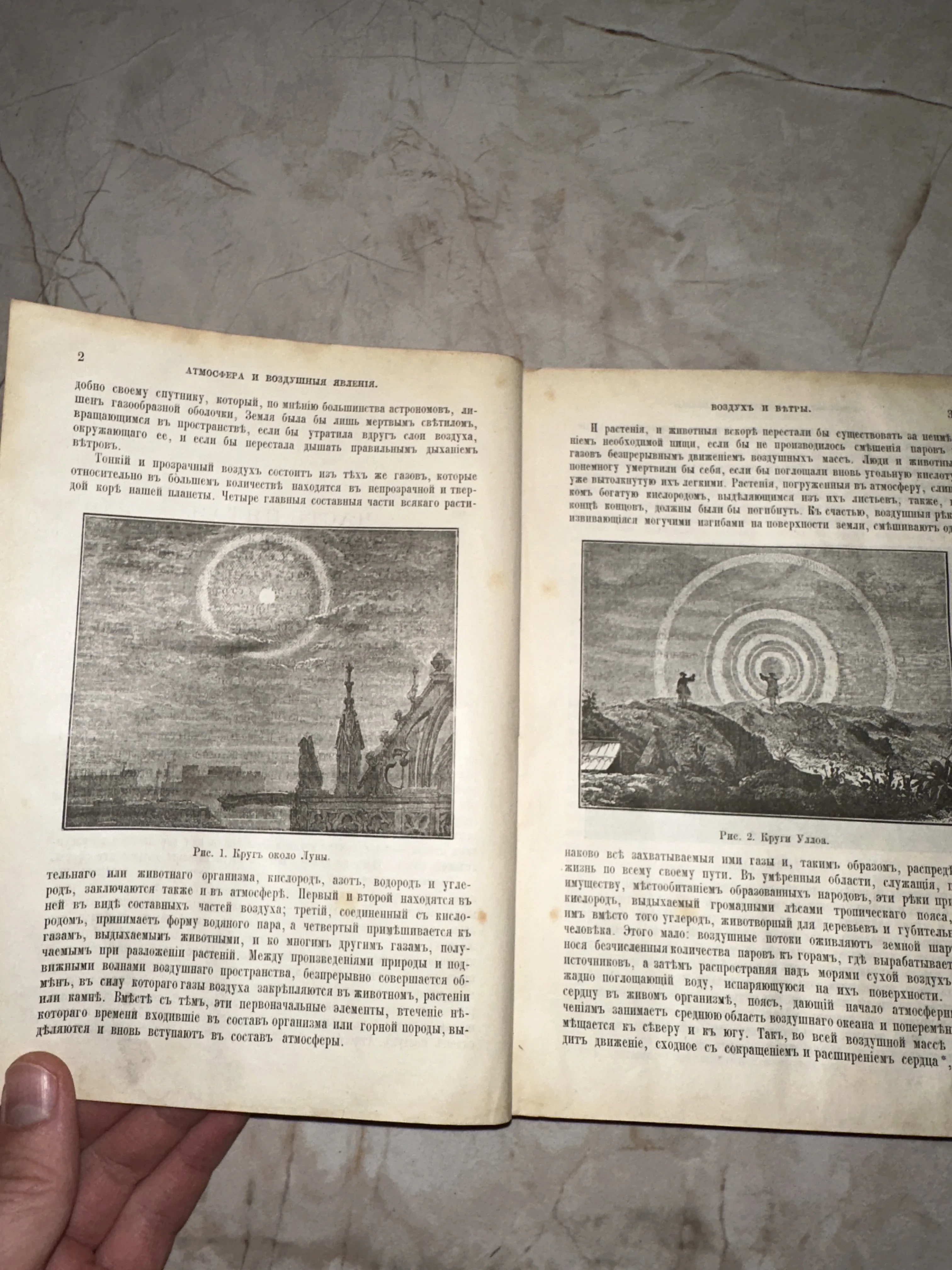 Этот уникальный разворот антикварного издания погружает в мир естественных наук прошлого, раскрывая секреты атмосферы и небесных явлений. Тщательно проработанные гравюры и классическая дореволюционная орфография придают предмету особую историческую и эстетическую ценность. Плотная бумага сохранила благородную патину времени, приглашая прикоснуться к знаниям ушедшей эпохи.