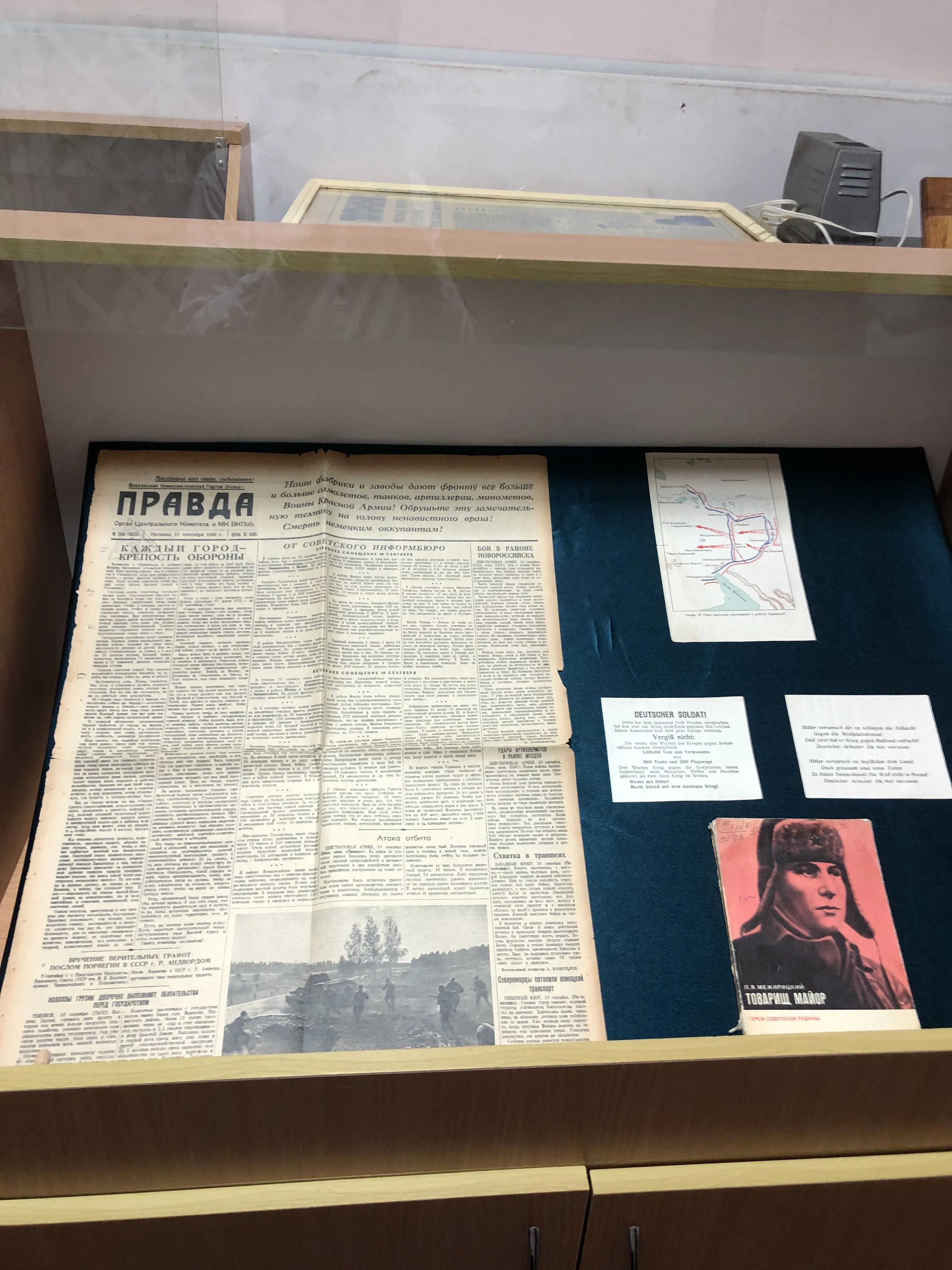 Уникальное собрание подлинных артефактов времен Великой Отечественной войны, центральное место в котором занимает выпуск газеты «Правда» за 11 сентября 1942 года. Пожелтевшие страницы с фронтовыми сводками, агитационные листовки и книга П. Я. Межирицкого передают суровую атмосферу героической эпохи. Экспонаты сохранили отличную читаемость текста и историческую аутентичность, представляя огромный интерес для коллекционеров милитарии.