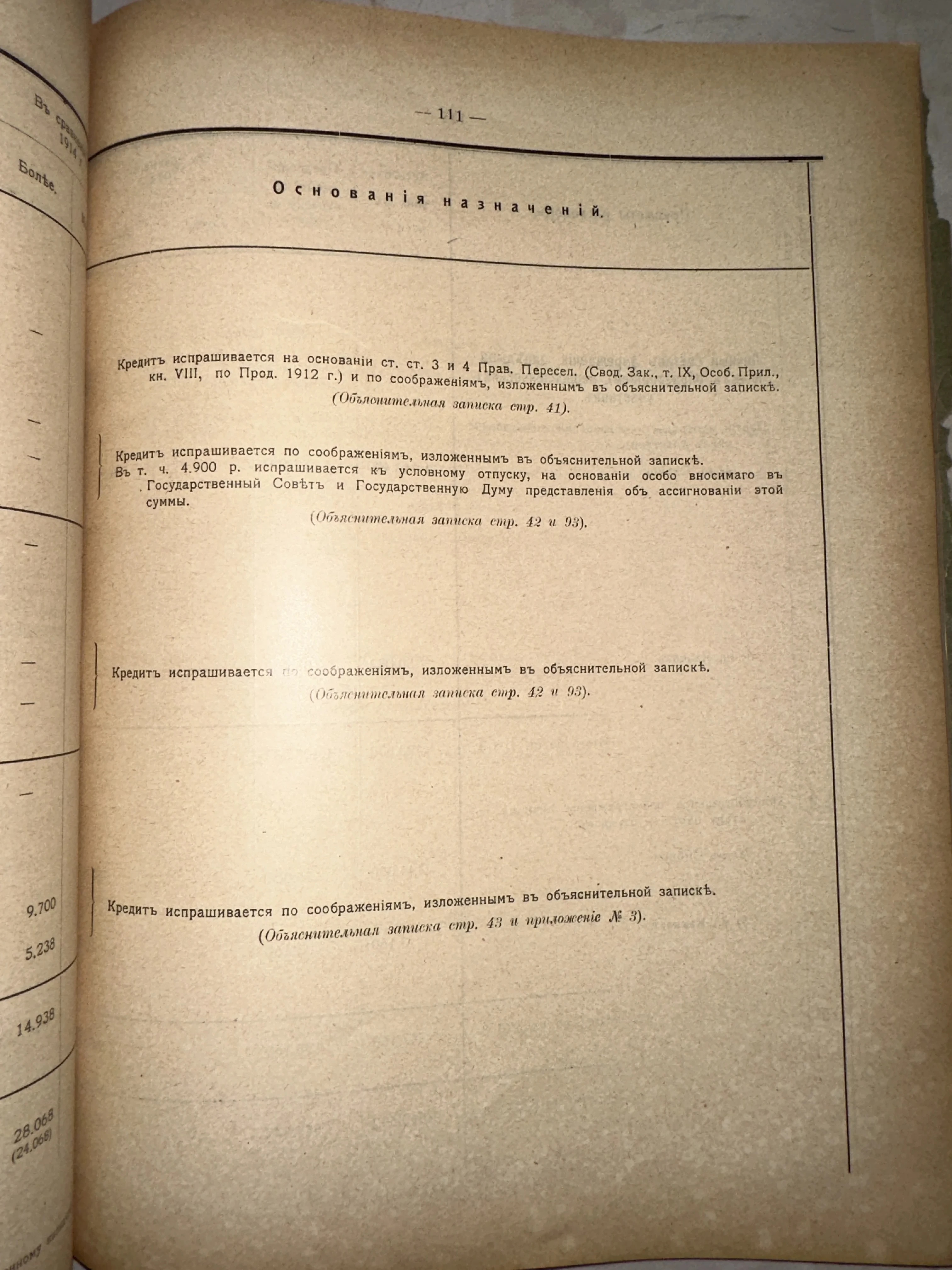 Аутентичная страница из официального издания времен Российской Империи, датированная примерно 1912–1914 годами. Текст, напечатанный изящным дореволюционным шрифтом на плотной бумаге с характерной патиной времени, отражает тонкости бюрократического и финансового аппарата той эпохи. Превосходный образец для коллекционеров юридической литературы и любителей истории государственного управления.