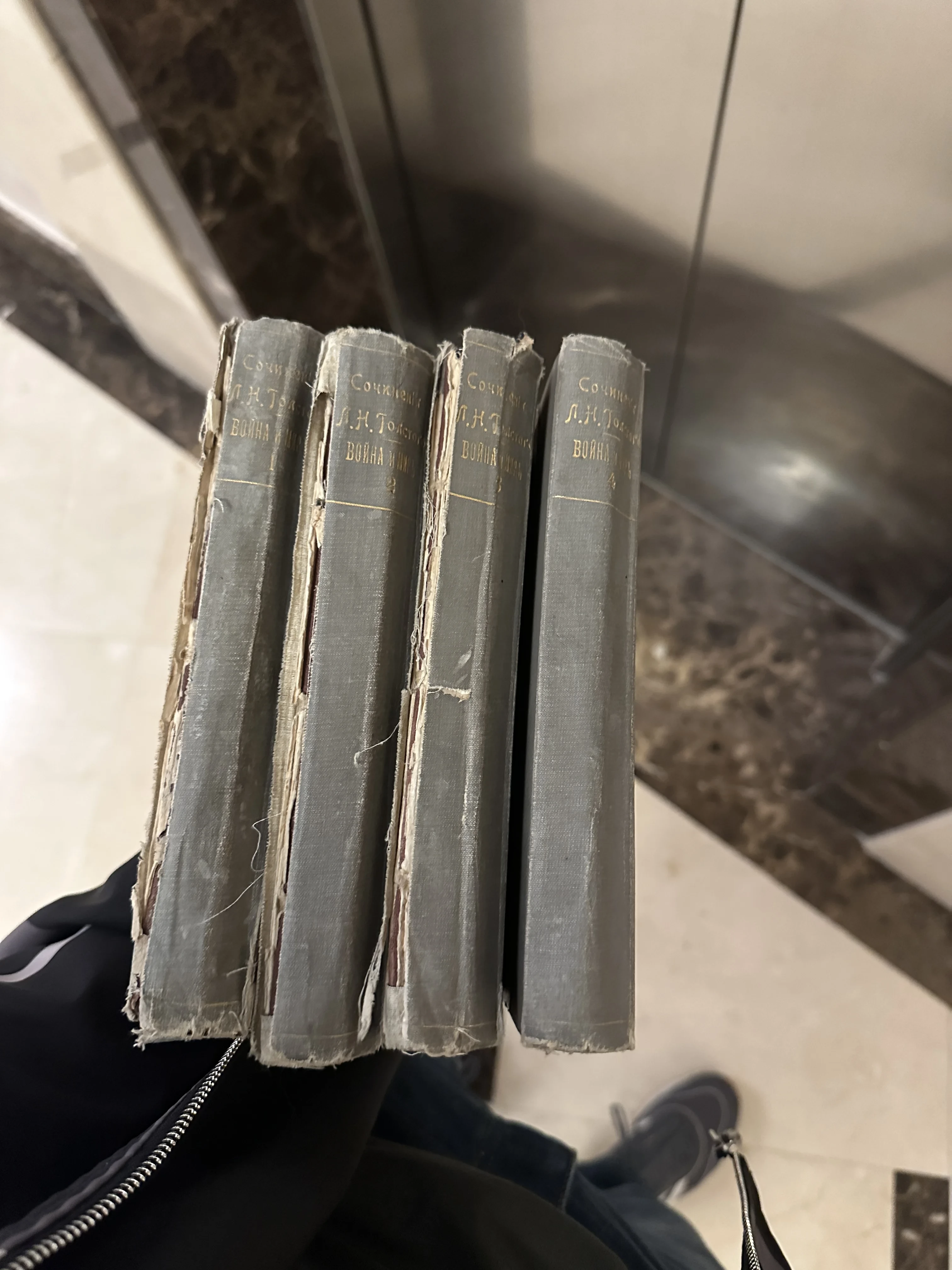Полный комплект из четырех томов бессмертного романа-эпопеи, сохранивший дух ушедшей эпохи. Характерные следы времени на корешках подчеркивают подлинность издания и придают ему особую коллекционную ценность. Настоящая находка для ценителей русской классики в оригинальном оформлении.
