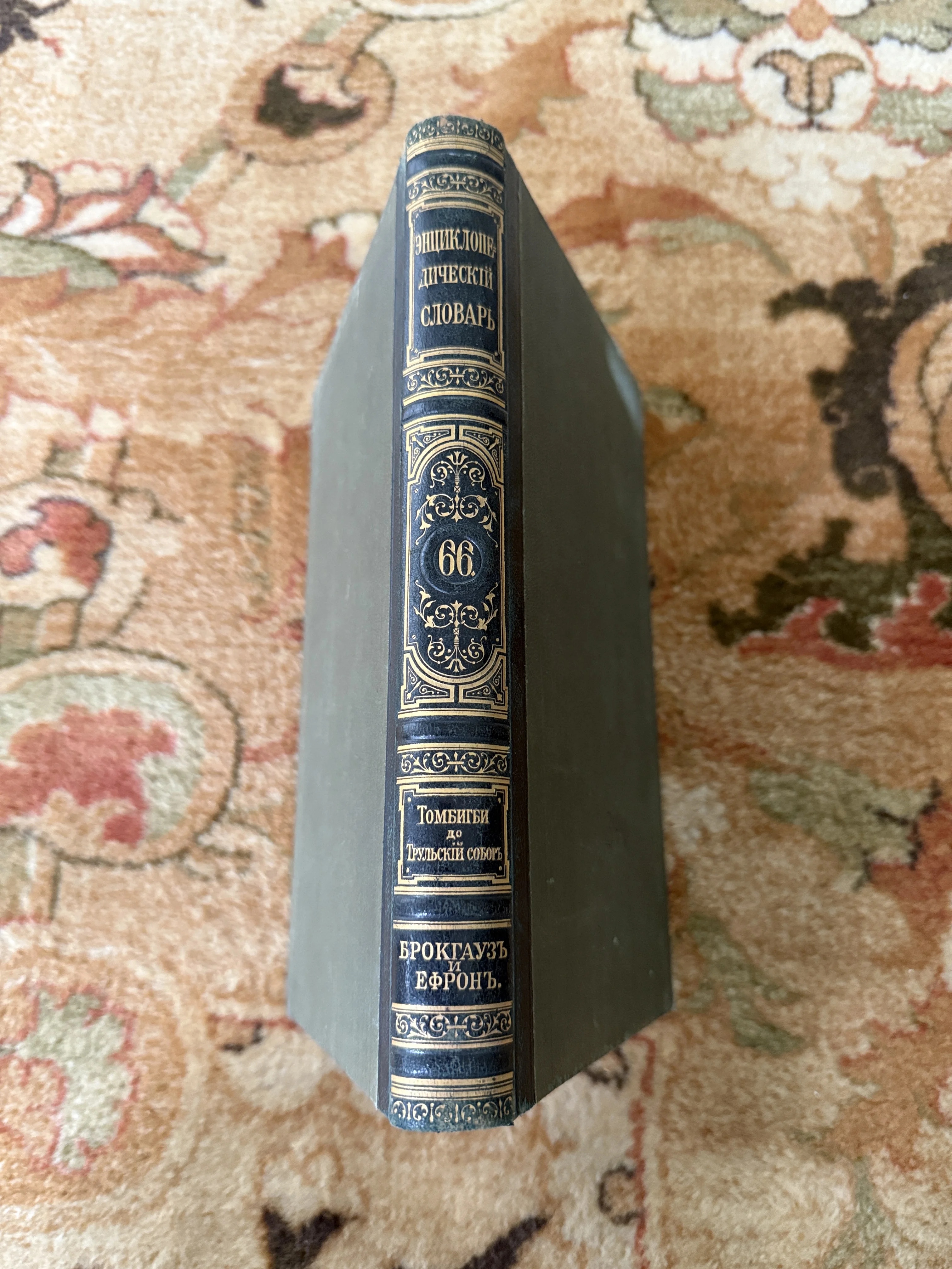 Перед вами монументальный 66-й том знаменитого словаря Брокгауза и Ефрона, изданный в дореволюционной России. Изящное золотое тиснение на темном корешке прекрасно сохранилось, подчеркивая коллекционную ценность и благородный возраст издания. Этот фолиант станет не только ценным источником знаний, но и статусным украшением классического интерьера.