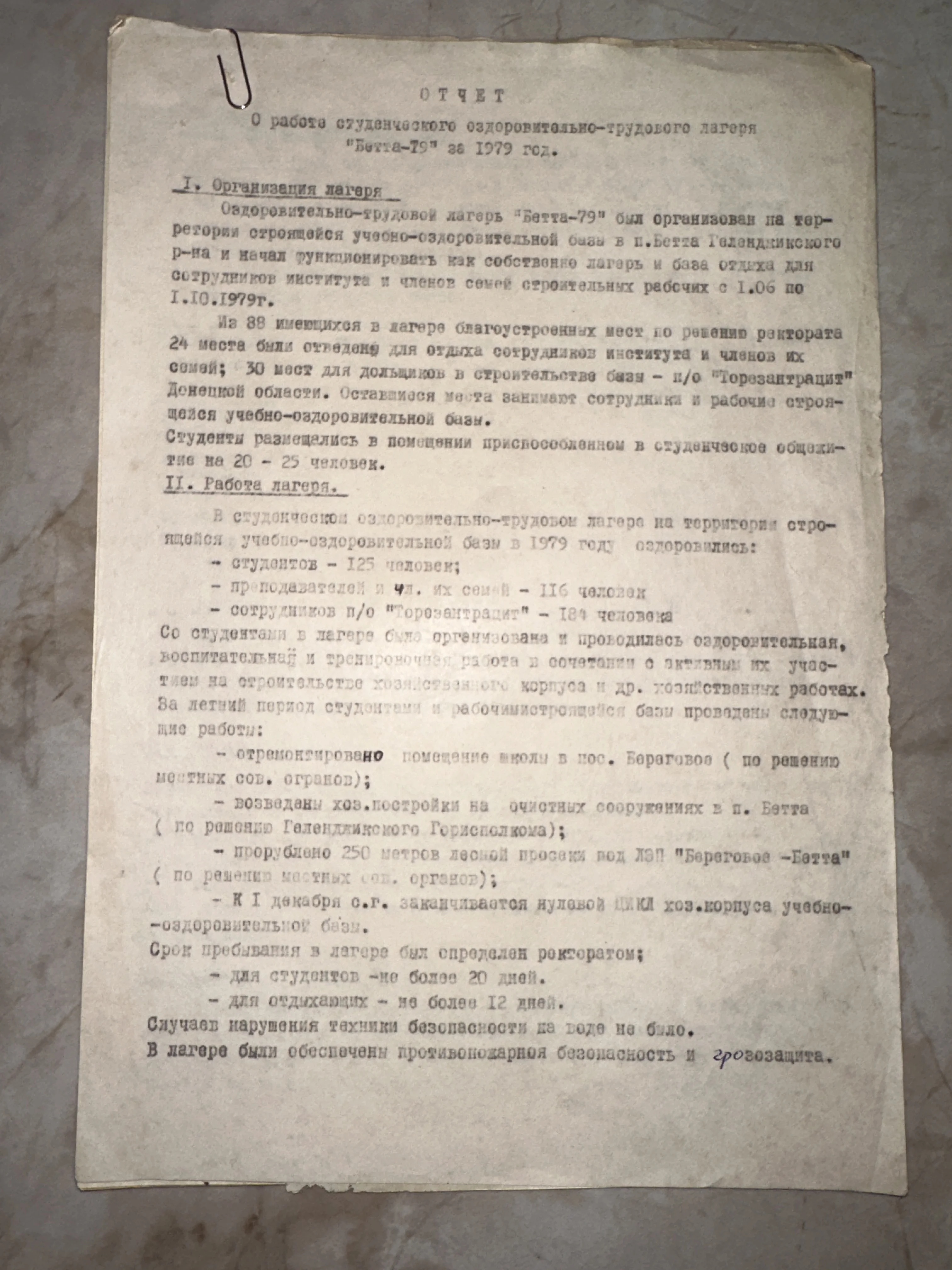 Отчет о работе студенческого лагеря «Бетта-79», 1979 год