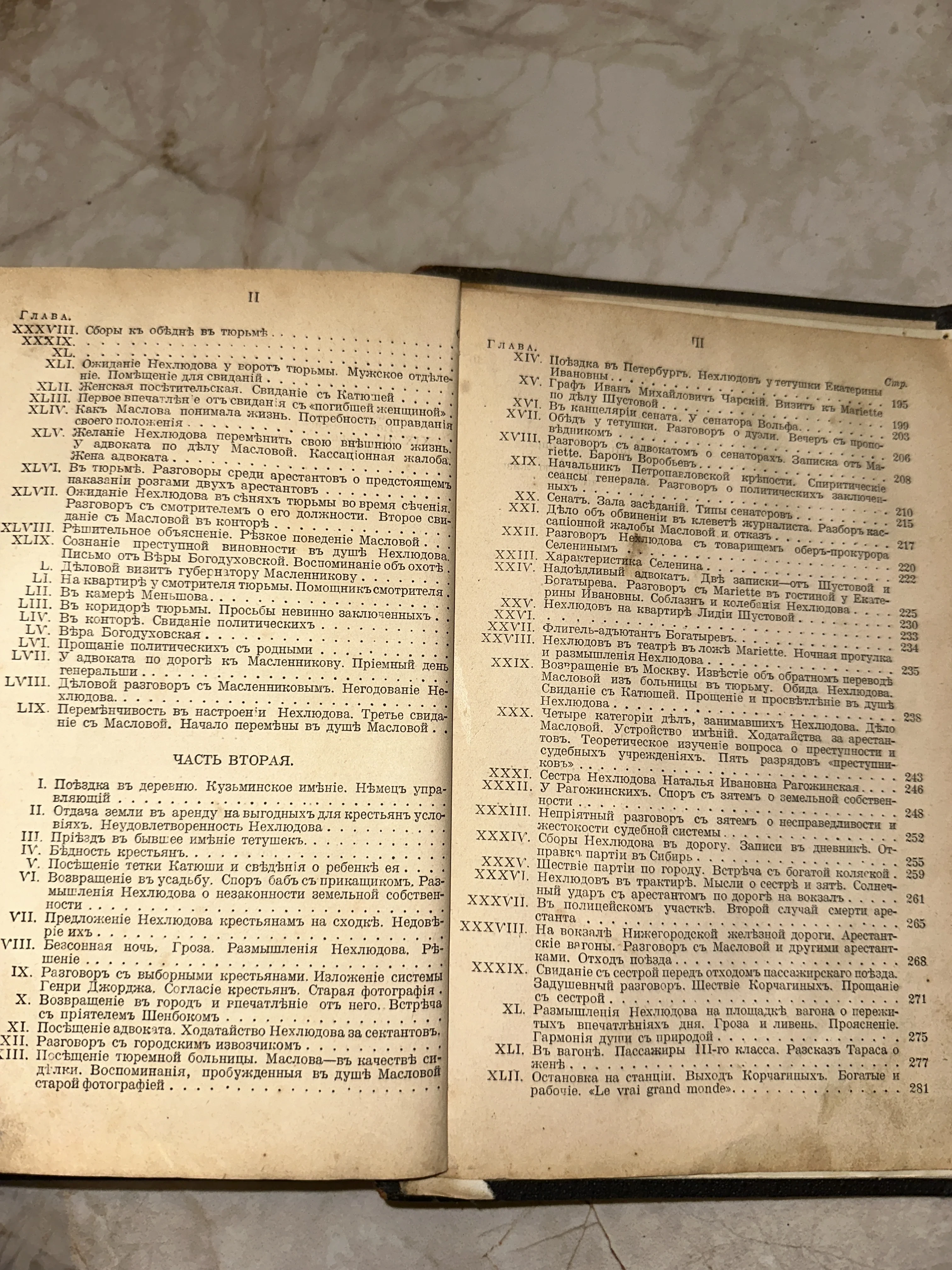 Страницы оглавления антикварного издания «Воскресение» Л.Н. Толстого