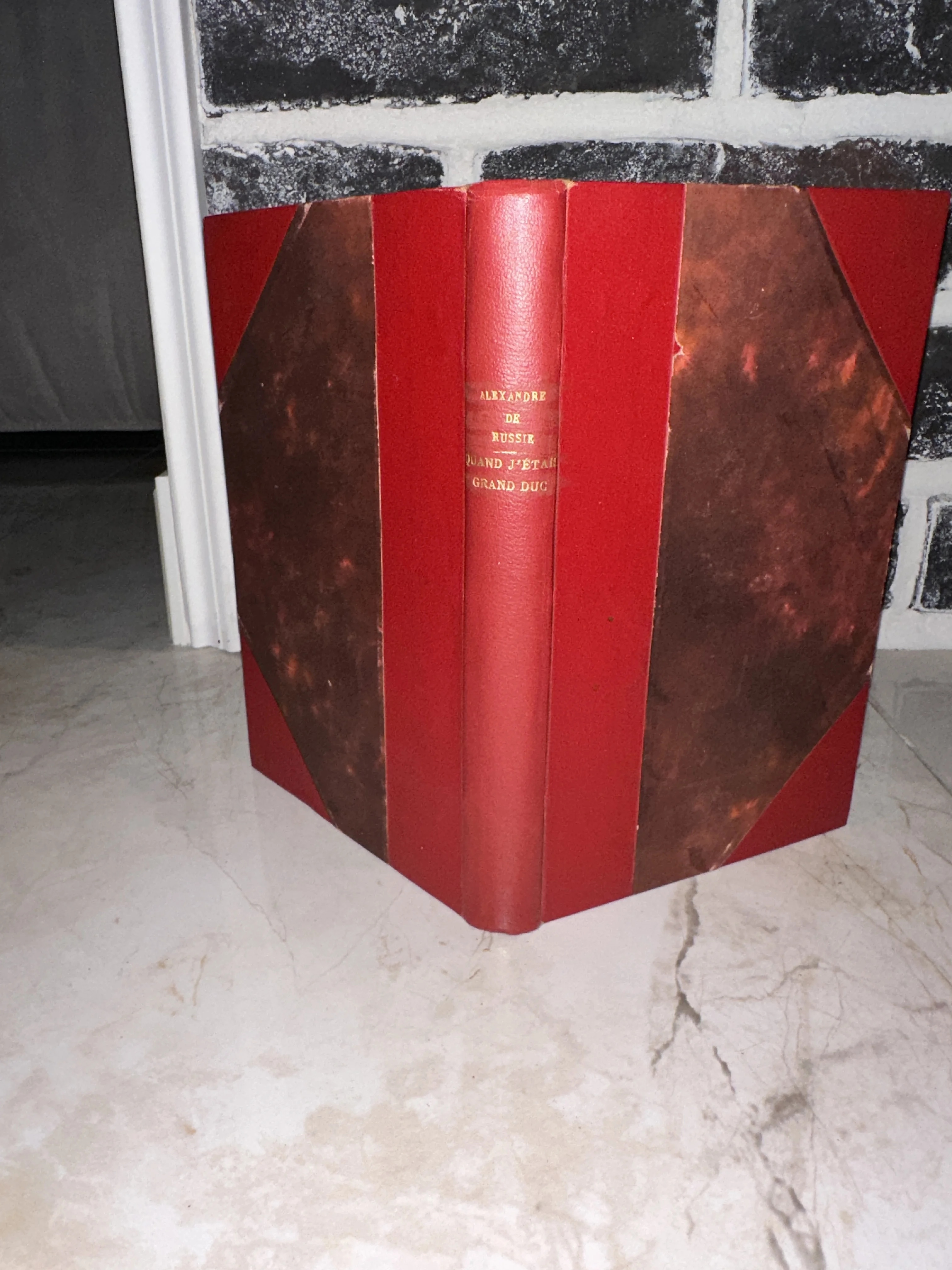 Изящное антикварное издание мемуаров великого князя Александра Михайловича «Когда я был великим князем», облаченное в благородный красный полукожаный переплет. Золотое тиснение на корешке и патинированные уголки подчеркивают историческую ценность этого экземпляра, хранящего воспоминания о жизни императорской семьи. Книга станет жемчужиной частной библиотеки и ценным подарком для истинного ценителя русской истории.