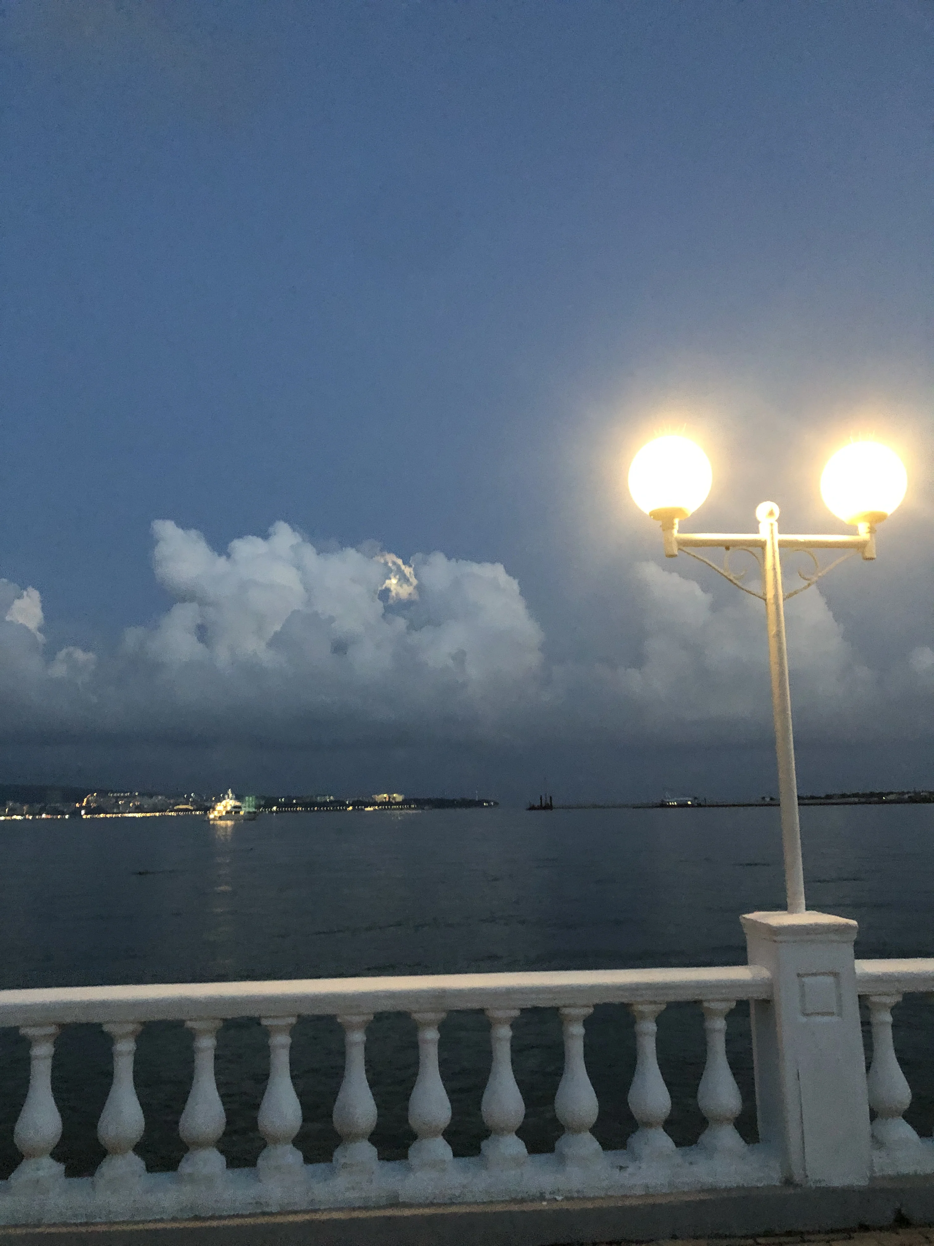 Классическая архитектура набережной и мягкий свет уличного фонаря создают неповторимый образ южной ночи. Глубокие синие тона неба и моря в сочетании с изящными балясинами балюстрады вызывают чувство ностальгии по романтическим прогулкам прошлых лет.