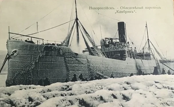 Обледенелый пароход «Камбрик» в Новороссийске
