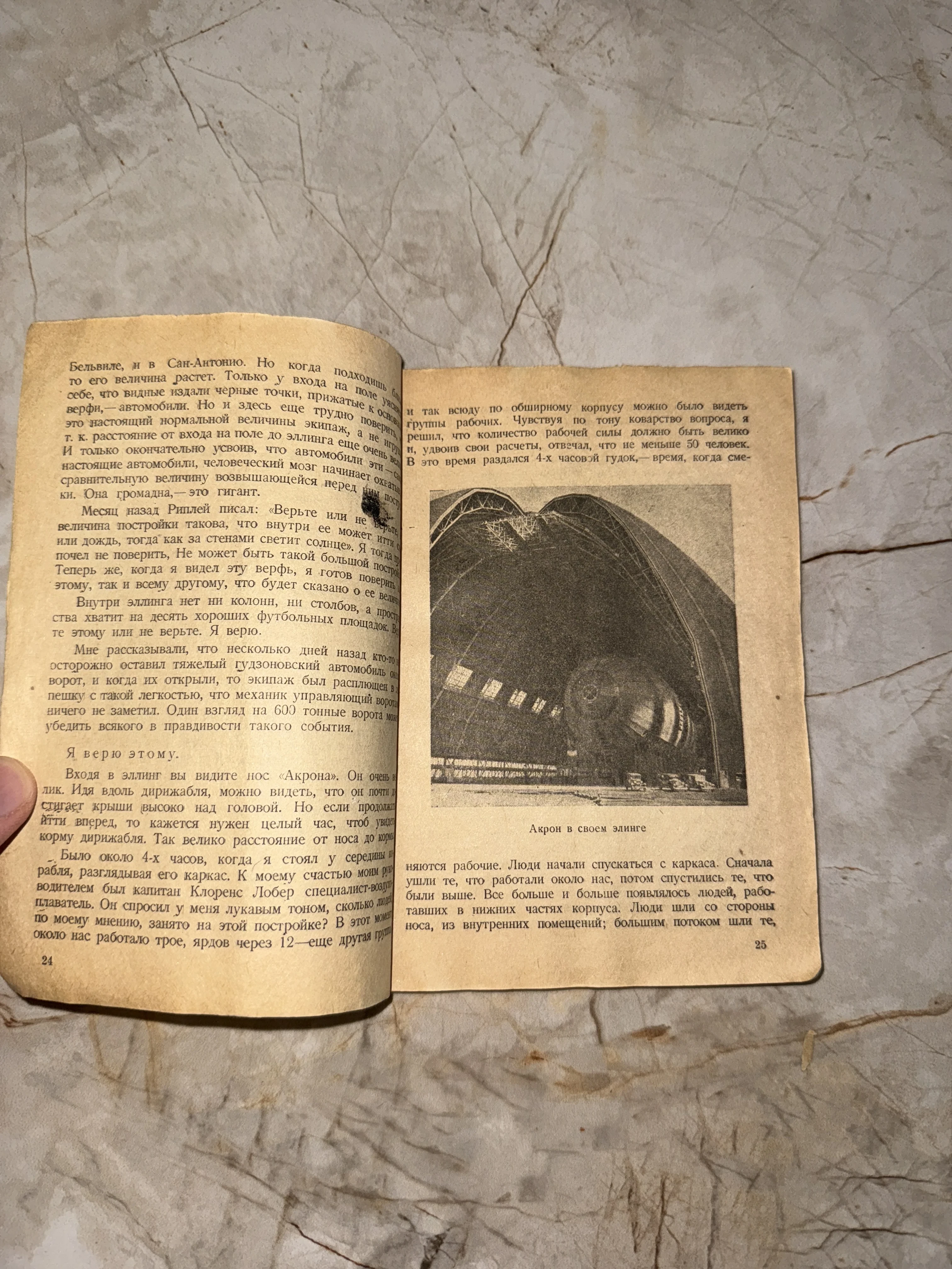 Разворот антикварного издания о дирижабле «Акрон»