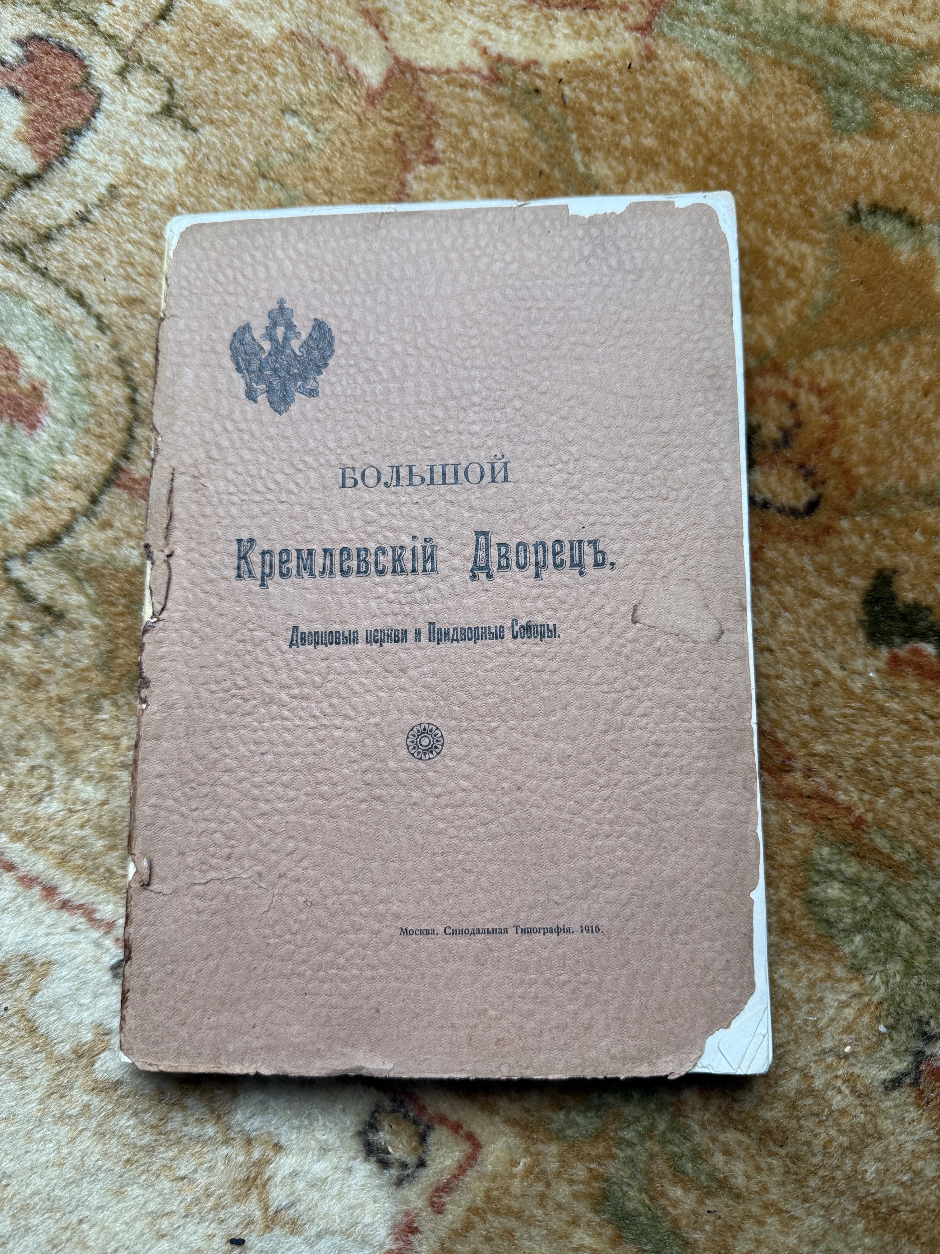 Уникальное антикварное издание, напечатанное в Синодальной типографии накануне великих исторических потрясений. Текстурированная бумажная обложка с двуглавым орлом и дореволюционной орфографией подчеркивает аутентичность предмета и его принадлежность к ушедшей эпохе. Это ценный исторический источник, детально описывающий убранство главных храмов и дворцовых залов Московского Кремля.