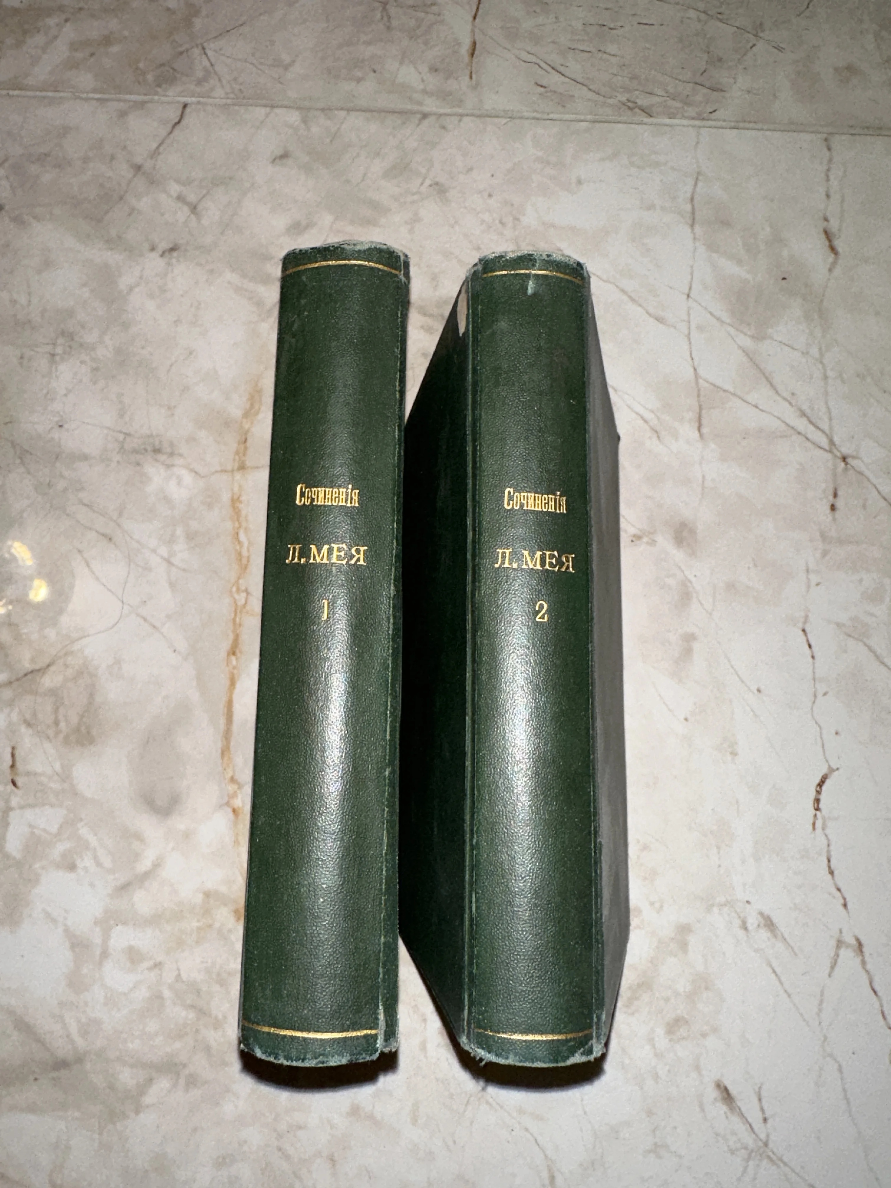 Элегантное двухтомное издание сочинений известного русского поэта и драматурга Льва Мея. Книги облачены в классические темно-зеленые переплеты с изящным золотым тиснением, сохранившим свой блеск сквозь десятилетия. Благородные следы времени на корешках придают изданию особый шарм и подчеркивают его подлинную антикварную ценность.