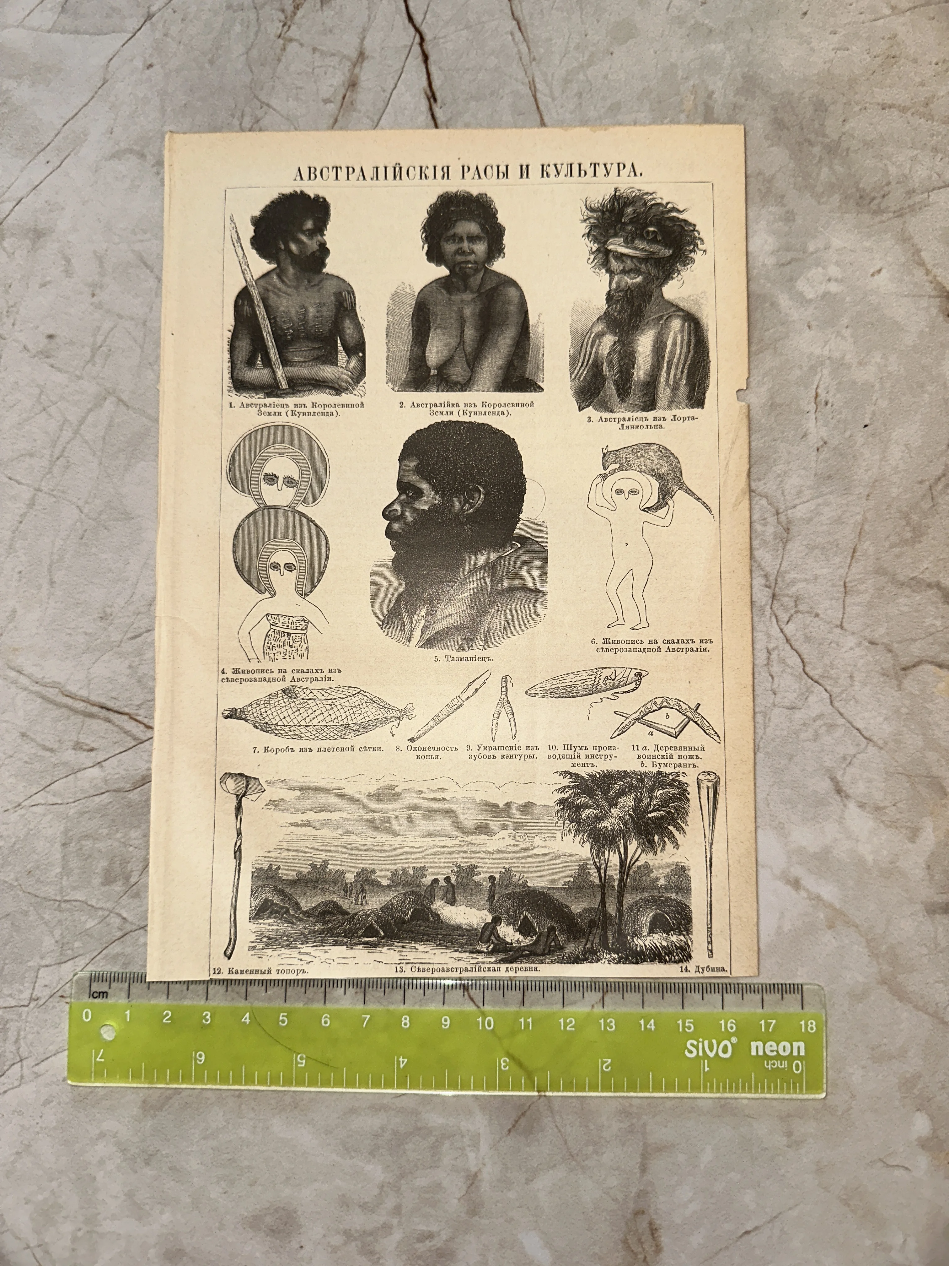 Этнографическая гравюра «Австралийские расы и культура»