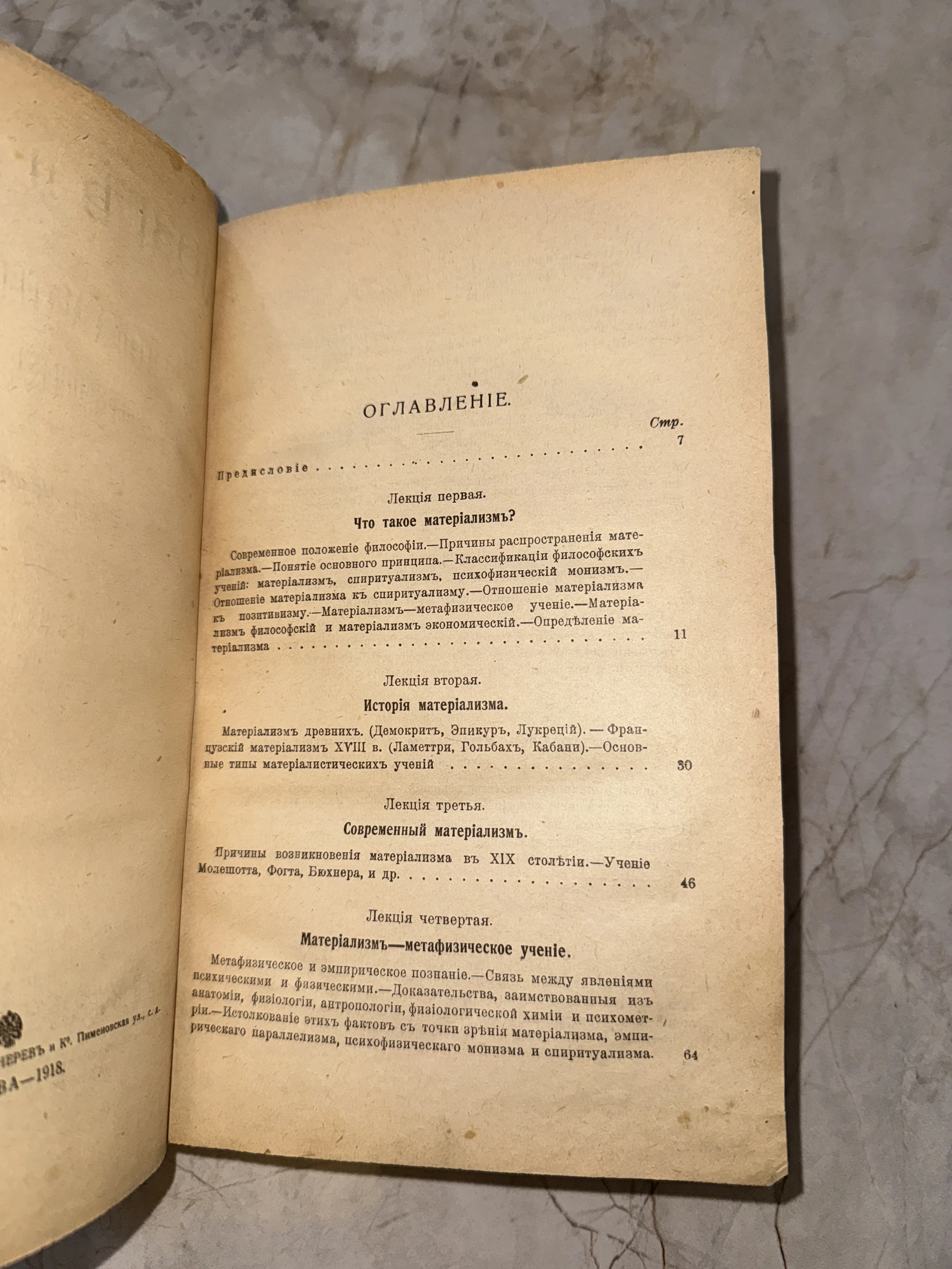 Оглавление антикварного философского издания