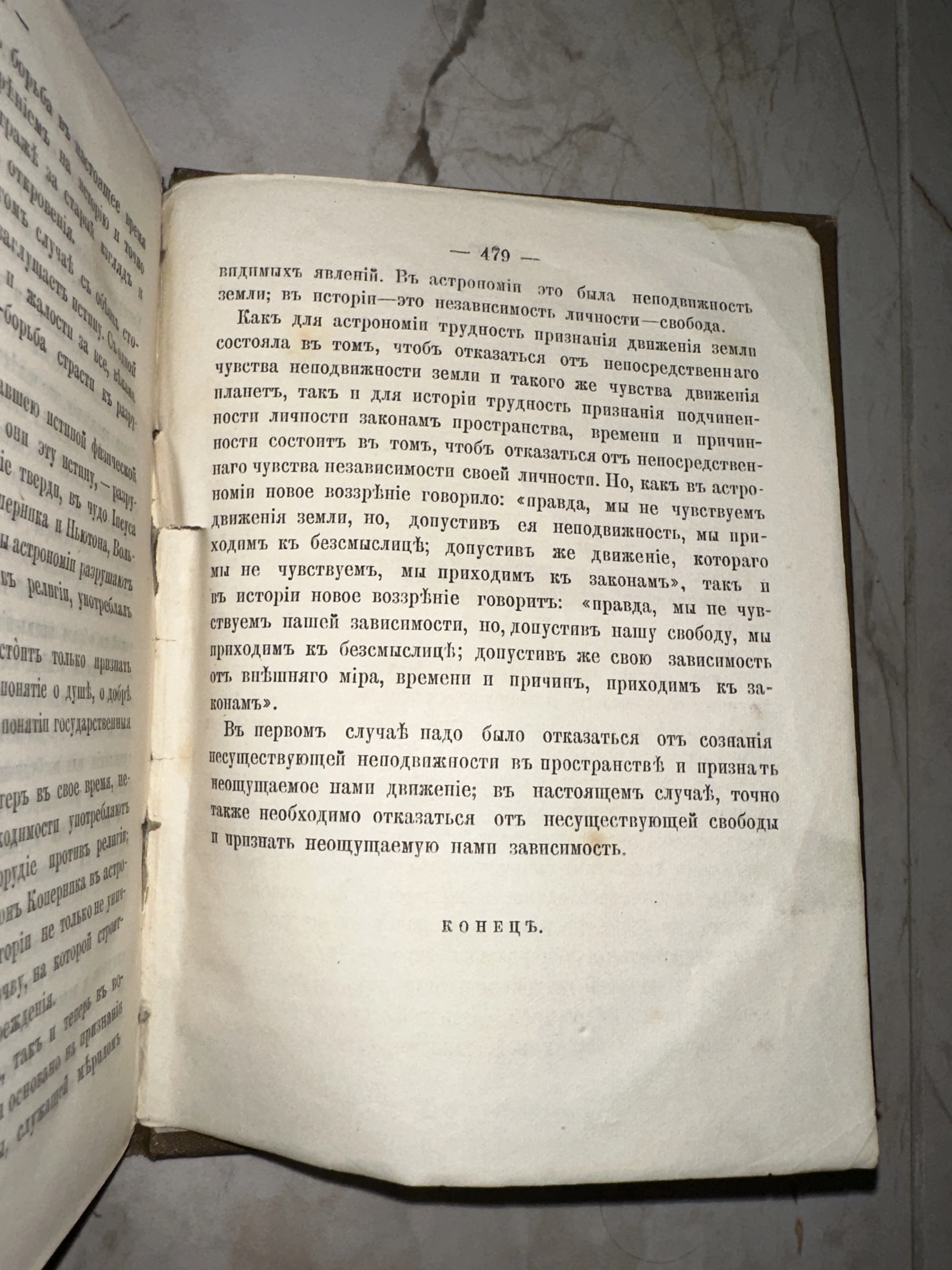 Перед вами подлинный фрагмент интеллектуальной истории, запечатленный на пожелтевших от времени страницах. Текст, посвященный философским размышлениям о свободе и законах истории, выполнен в дореволюционной орфографии, что придает изданию особую коллекционную эстетику. Прекрасная сохранность типографской печати и аутентичная фактура бумаги делают этот экземпляр ценной находкой для ценителей старины.