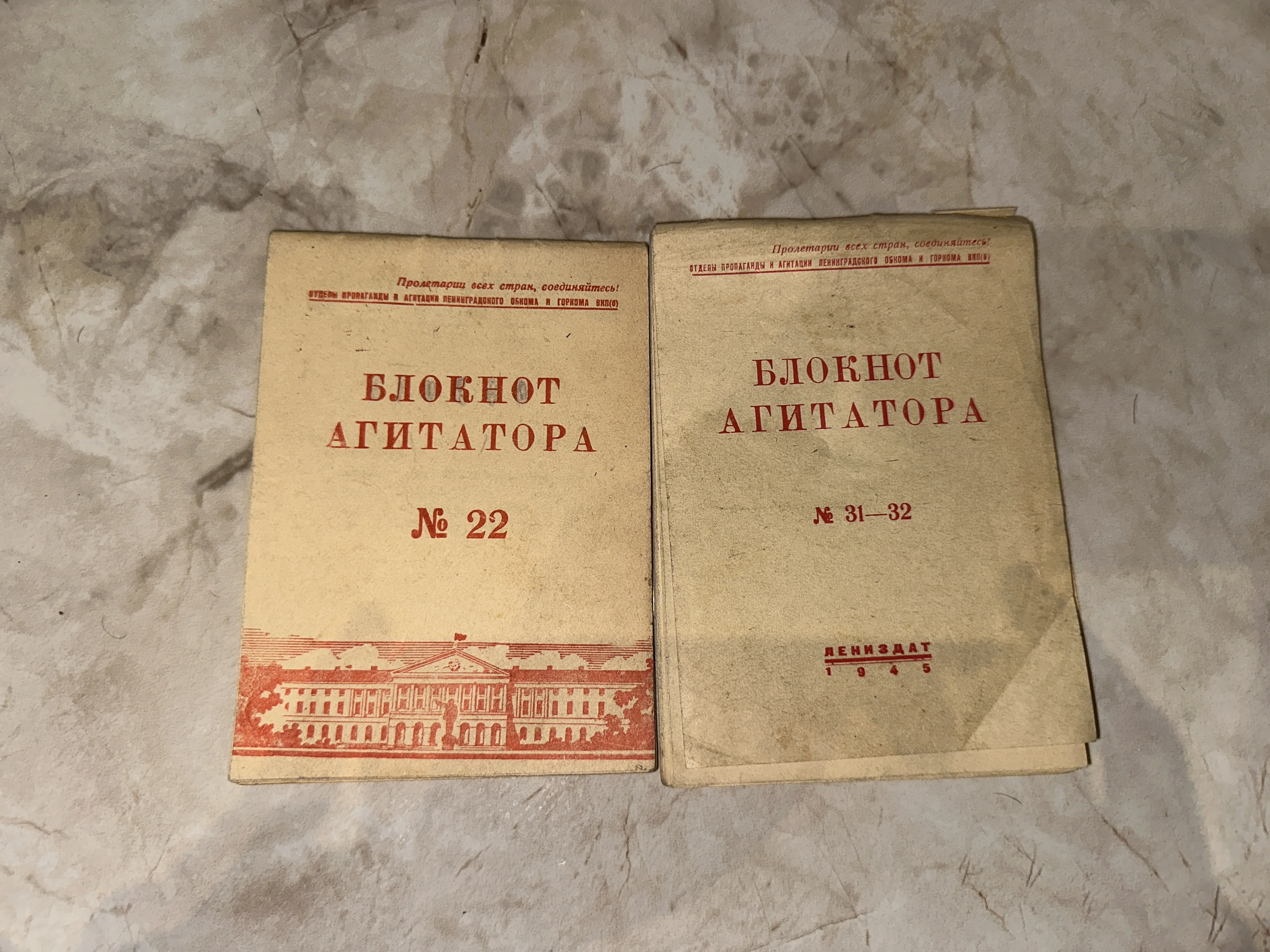 Две антикварные брошюры «Блокнот агитатора» №22 и №31-32, изданные Лениздатом в 1945 году.