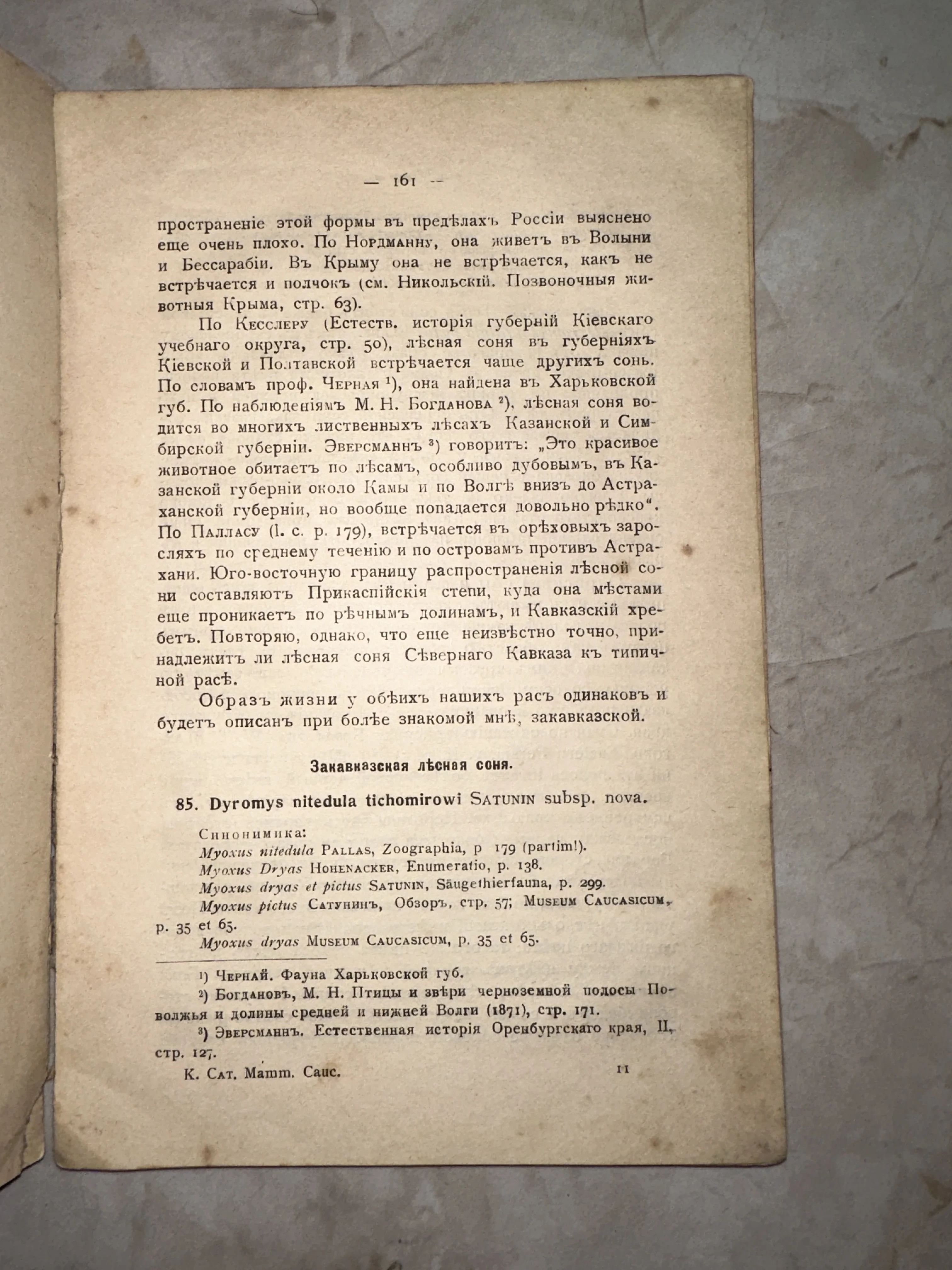 Этот подлинный фрагмент научного труда начала XX века посвящен изучению закавказской лесной сони и содержит ссылки на классиков естествознания. Пожелтевшая от времени плотная бумага с характерной патиной и четкая антикварная типографика передают дух великих академических экспедиций прошлого. Превосходный экземпляр для коллекционеров естественнонаучной литературы и любителей дореволюционной орфографии.