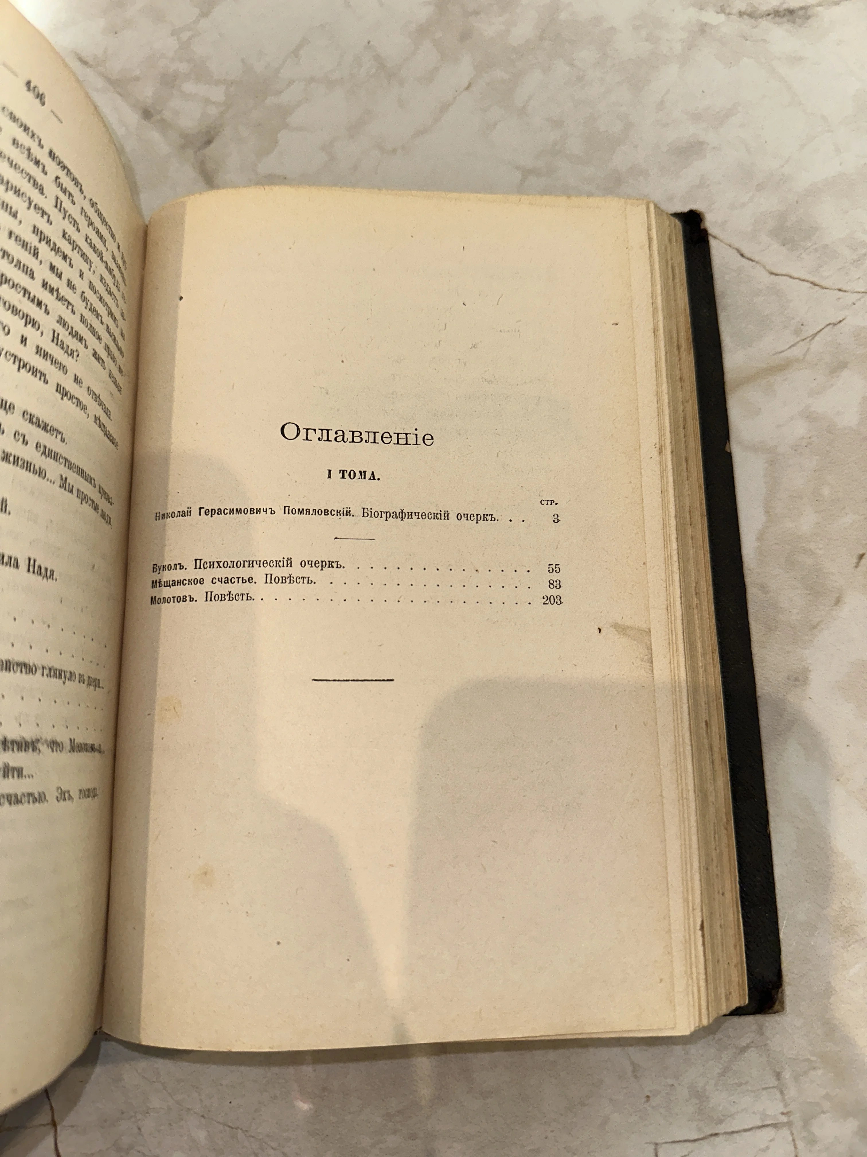 Оглавление первого тома сочинений Н. Г. Помяловского