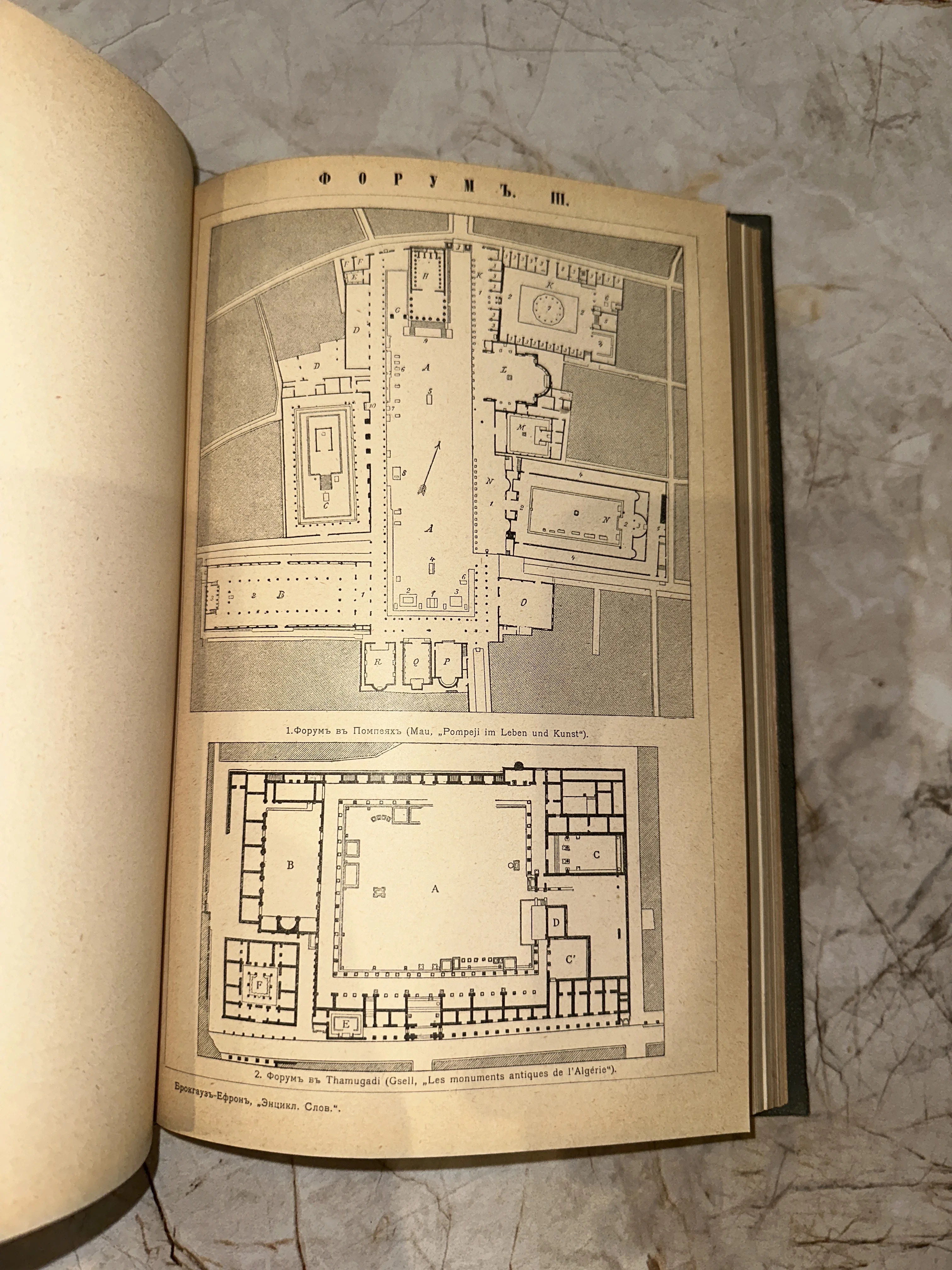 Чертежи планов форумов в Помпеях и Тимгаде на странице антикварной энциклопедии Брокгауза и Ефрона.