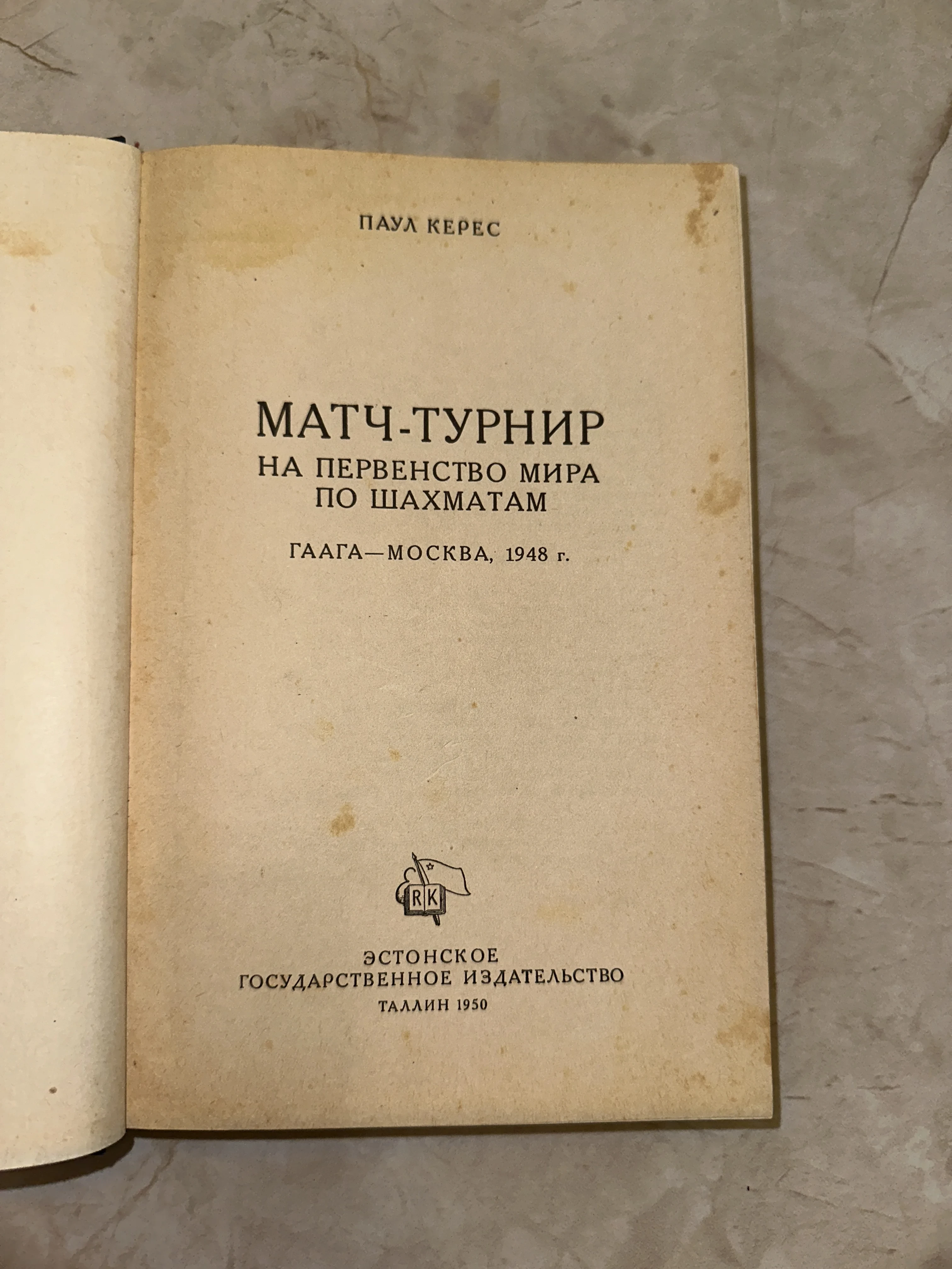 Титульный лист советского издания книги Пауля Кереса о шахматном турнире 1948 года, напечатанного в Таллине в 1950 году.