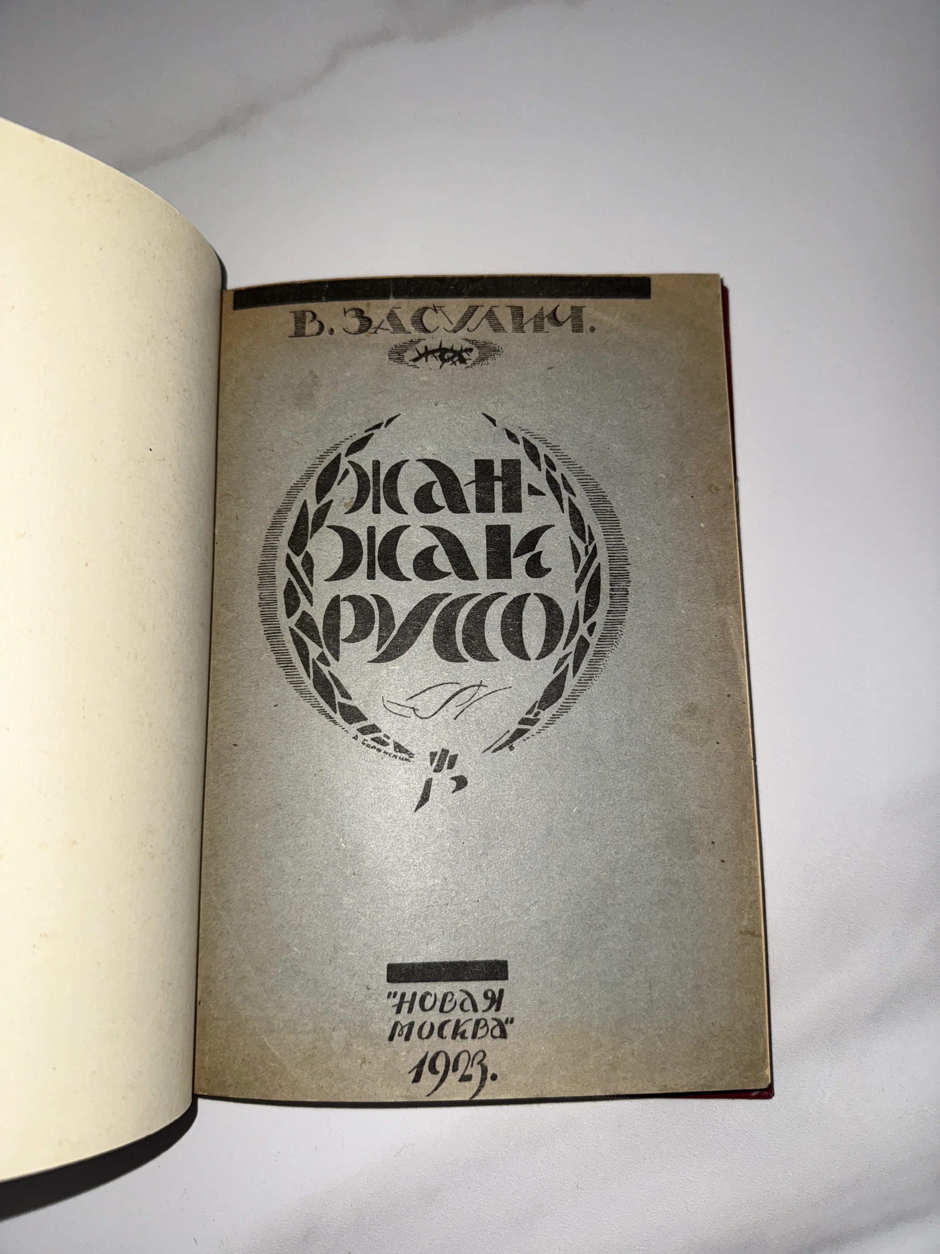 Антикварное издание начала советской эпохи с характерной для 1920-х годов графикой на титульном листе. Работа известной революционерки Веры Засулич, посвященная французскому мыслителю, представлена в строгом шрифтовом оформлении с элементами раннесоветского авангарда. Книга находится в хорошем коллекционном состоянии, сохранив аутентичную фактуру бумаги и четкость печати того времени.