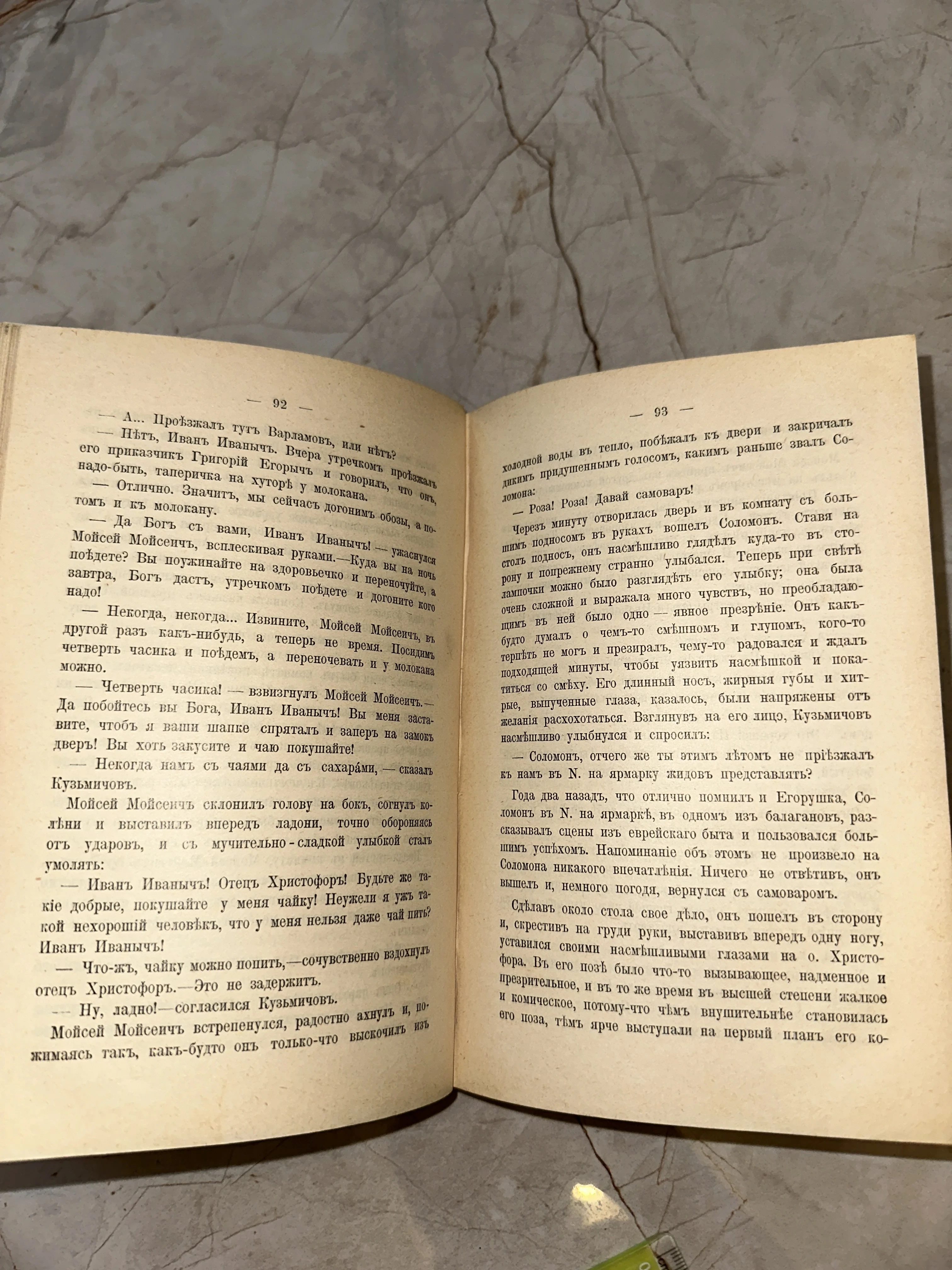 Перед вами аутентичный разворот старинной книги, сохранивший неповторимый шарм дореволюционной типографики с характерными литерами «ять» и «ер». Пожелтевшие страницы и четкий антикварный шрифт передают атмосферу тихих кабинетов и литературных вечеров конца XIX века. Этот экземпляр станет ценным дополнением частной коллекции или изысканным реквизитом для ценителей исторической эстетики.