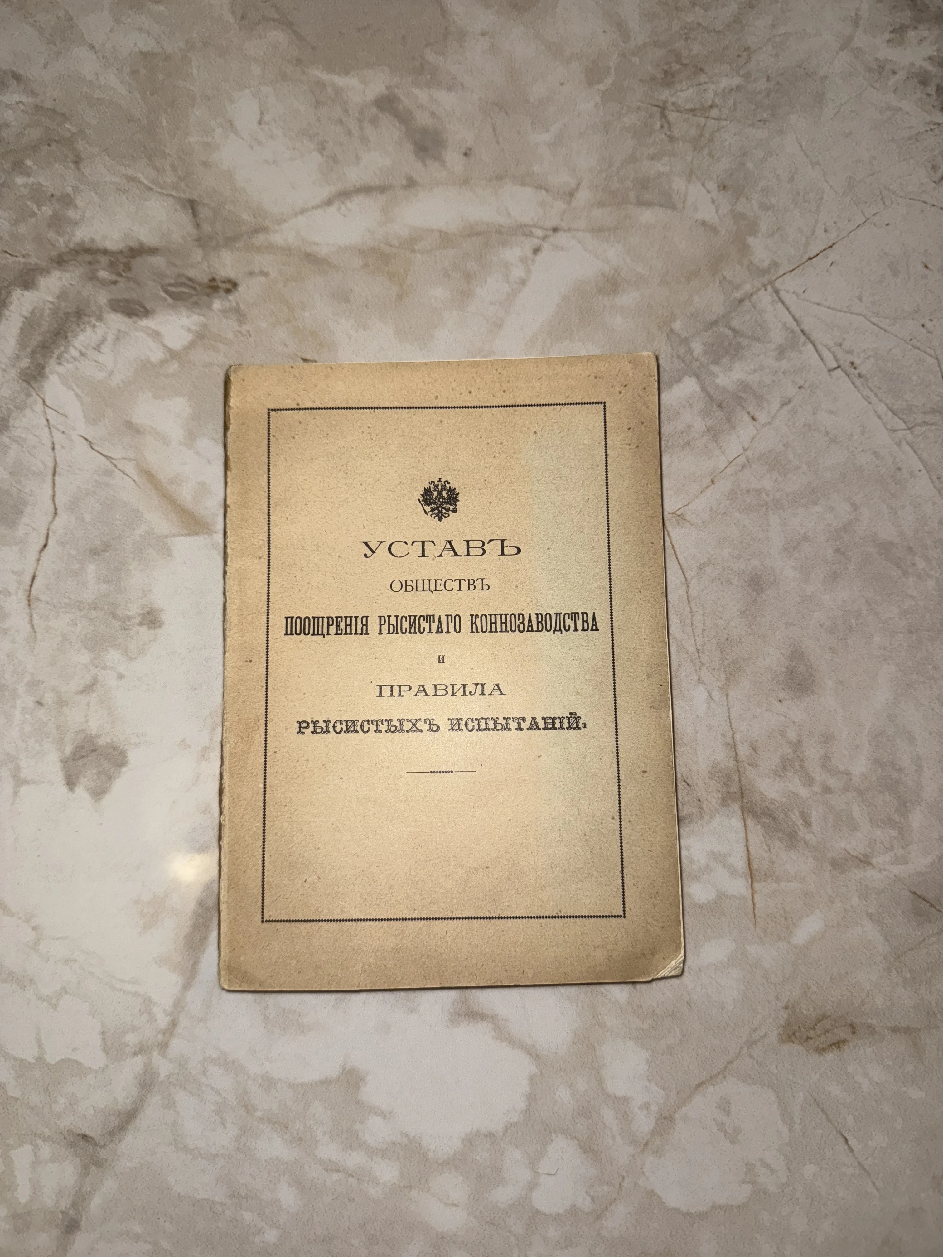 Редкое дореволюционное издание, регламентирующее деятельность коннозаводчиков и порядок проведения скачек в императорской России. Документ украшен государственным гербом, а его пожелтевшие страницы сохранили строгую эстетику официальных публикаций конца XIX — начала XX века. Настоящая находка для коллекционеров, увлеченных историей отечественного коневодства и ипподромов.