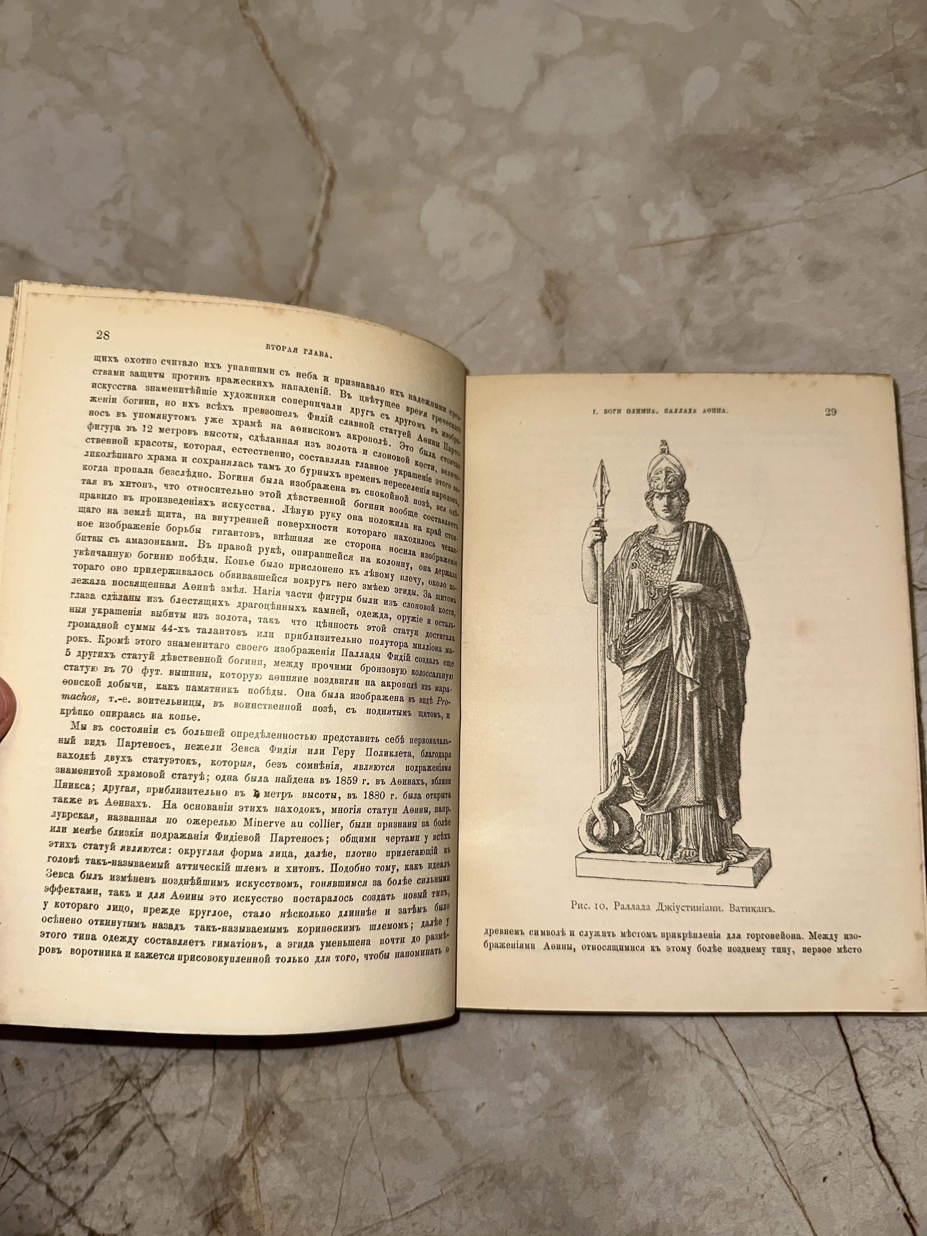 Изящное дореволюционное издание, посвященное античному искусству и мифологии. На страницах с благородной патиной времени представлена детальная иллюстрация знаменитой статуи из Ватикана, сопровождаемая текстом со старой орфографией. Превосходный экземпляр для ценителей классической истории и старинной типографики.