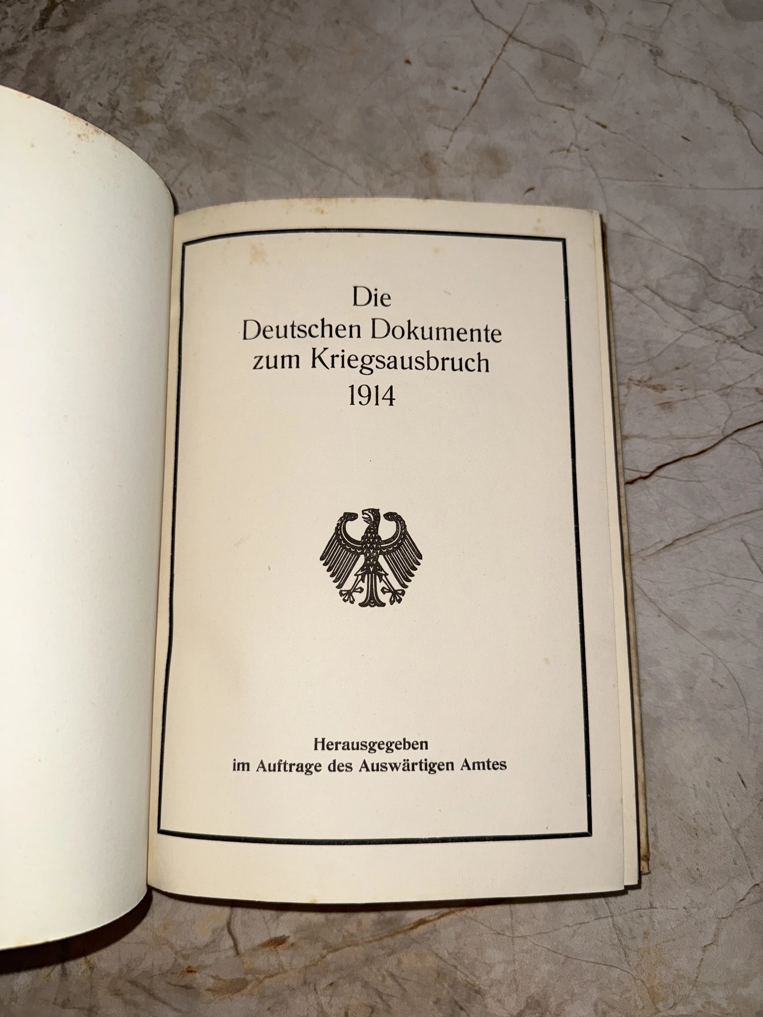 Титульный лист антикварного немецкого издания Die Deutschen Dokumente zum Kriegsausbruch 1914 с имперским орлом.