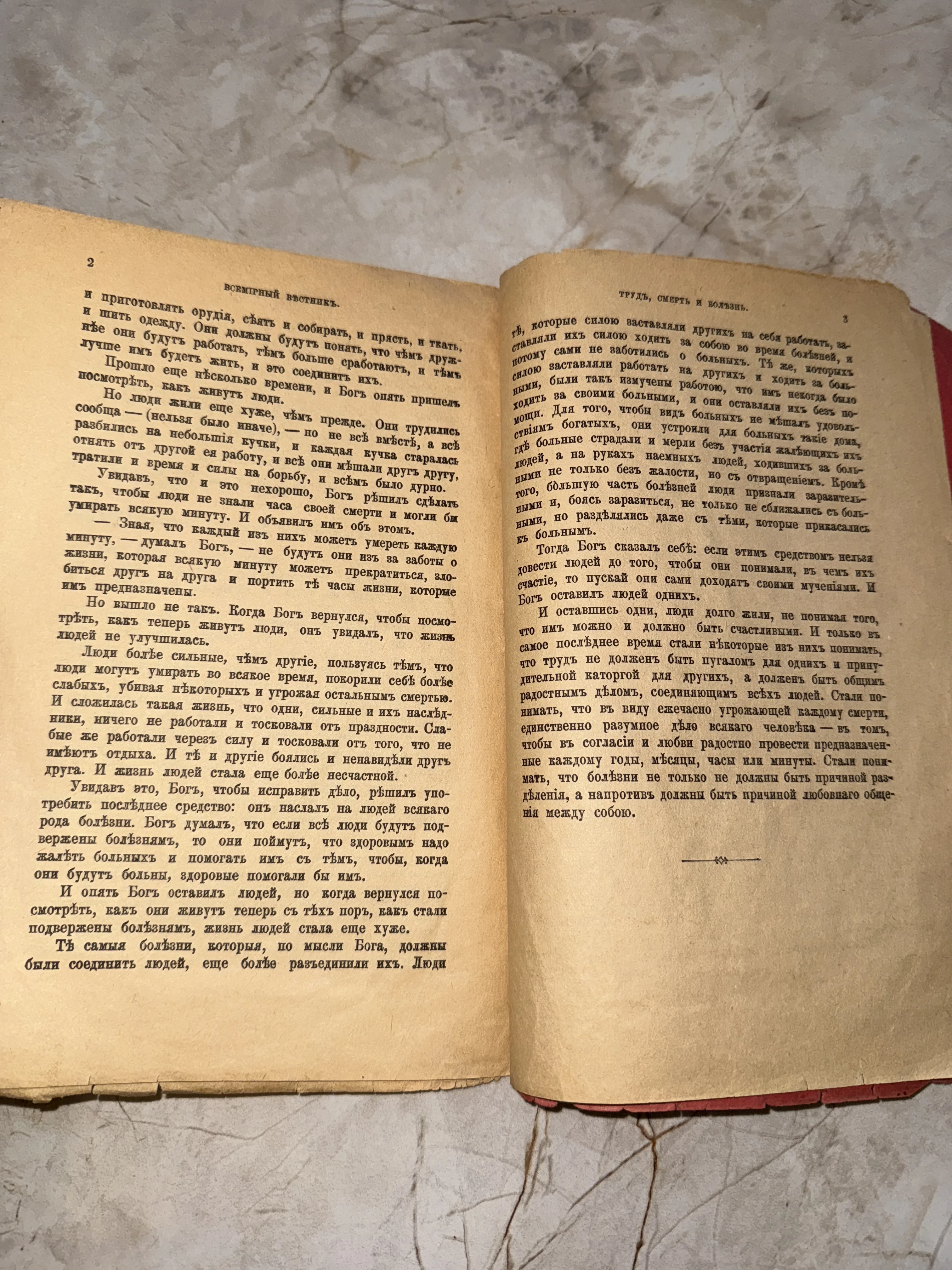 Перед вами подлинный фрагмент истории — разворот литературного журнала «Всемирный Вестник» с философским очерком о смысле бытия. Пожелтевшие от времени страницы сохранили дух ушедшей эпохи и уникальную дореволюционную орфографию. Прекрасный экземпляр для коллекционеров антикварной периодики и любителей классической русской мысли.