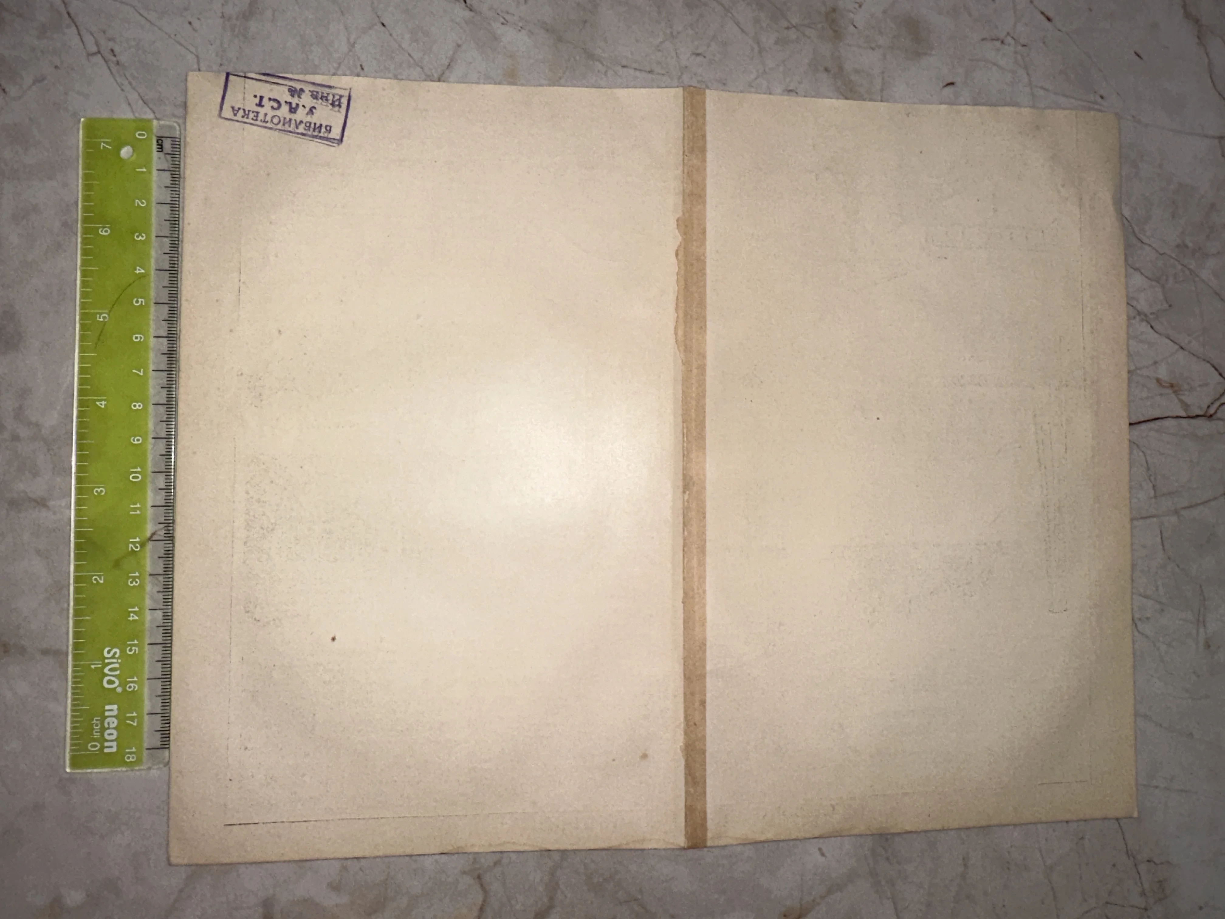 Этот аутентичный лист бумаги хранит на себе отпечаток истории в виде редкого архивного штампа советской библиотеки. Характерное пожелтение и текстура времени делают его ценным экземпляром для коллекционеров печатных артефактов или мастеров исторической реконструкции.