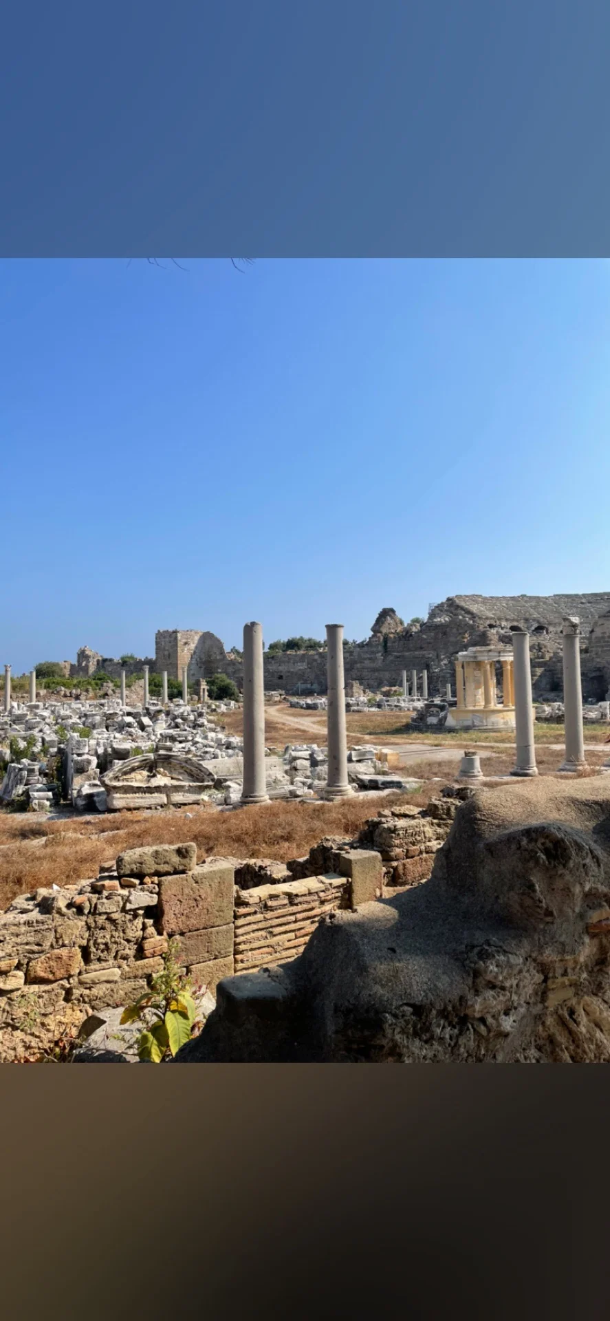 Величественные руины античного полиса, застывшие во времени под палящим средиземноморским солнцем. Одинокие колонны и фрагменты массивных кладок рассказывают историю былого могущества, приглашая прикоснуться к тайнам ушедших цивилизаций. Этот вид наполнен атмосферой вечности и безмолвного достоинства древней архитектуры.