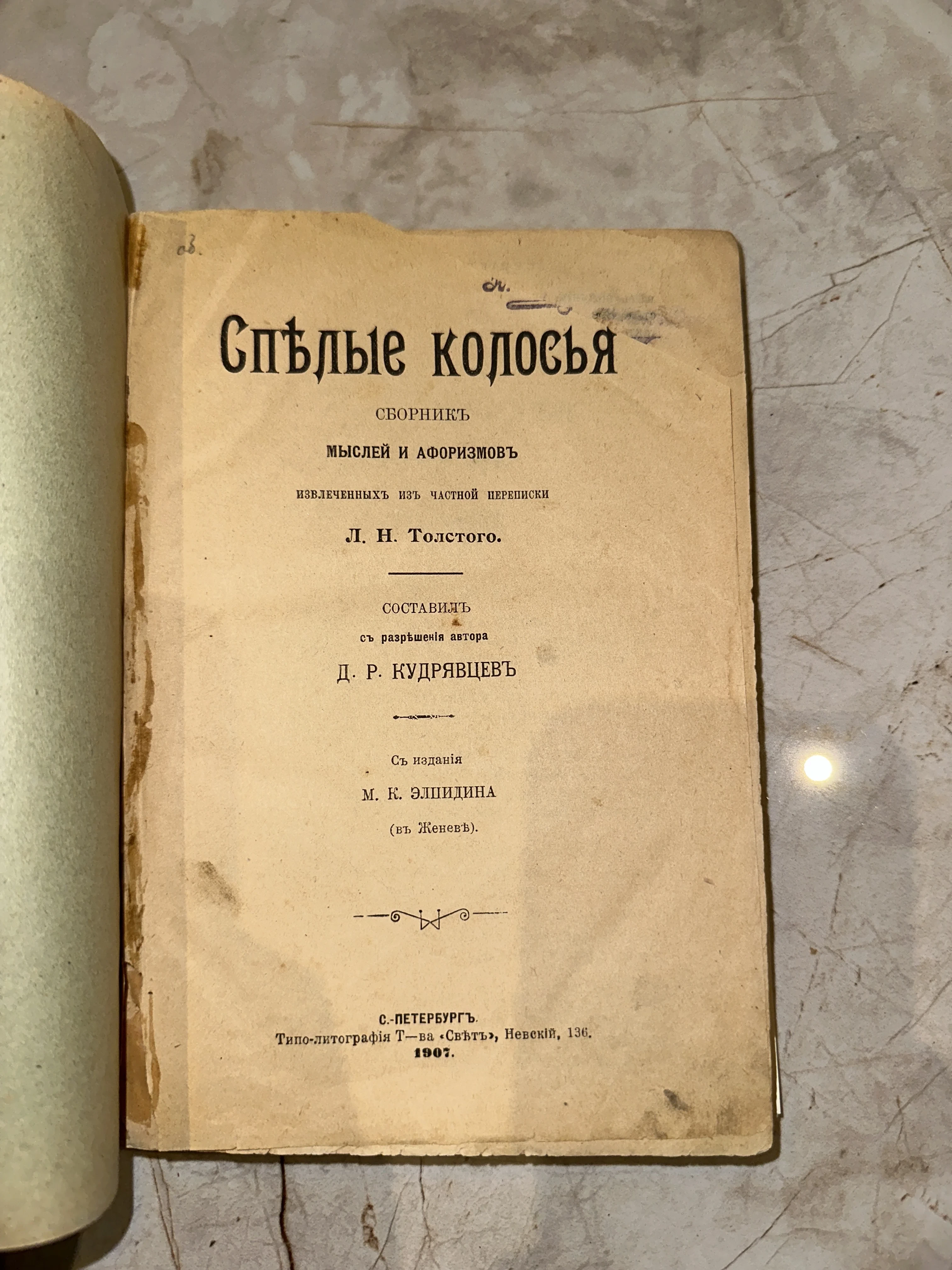 Сборник афоризмов Л. Н. Толстого «Спелые колосья», 1907 год