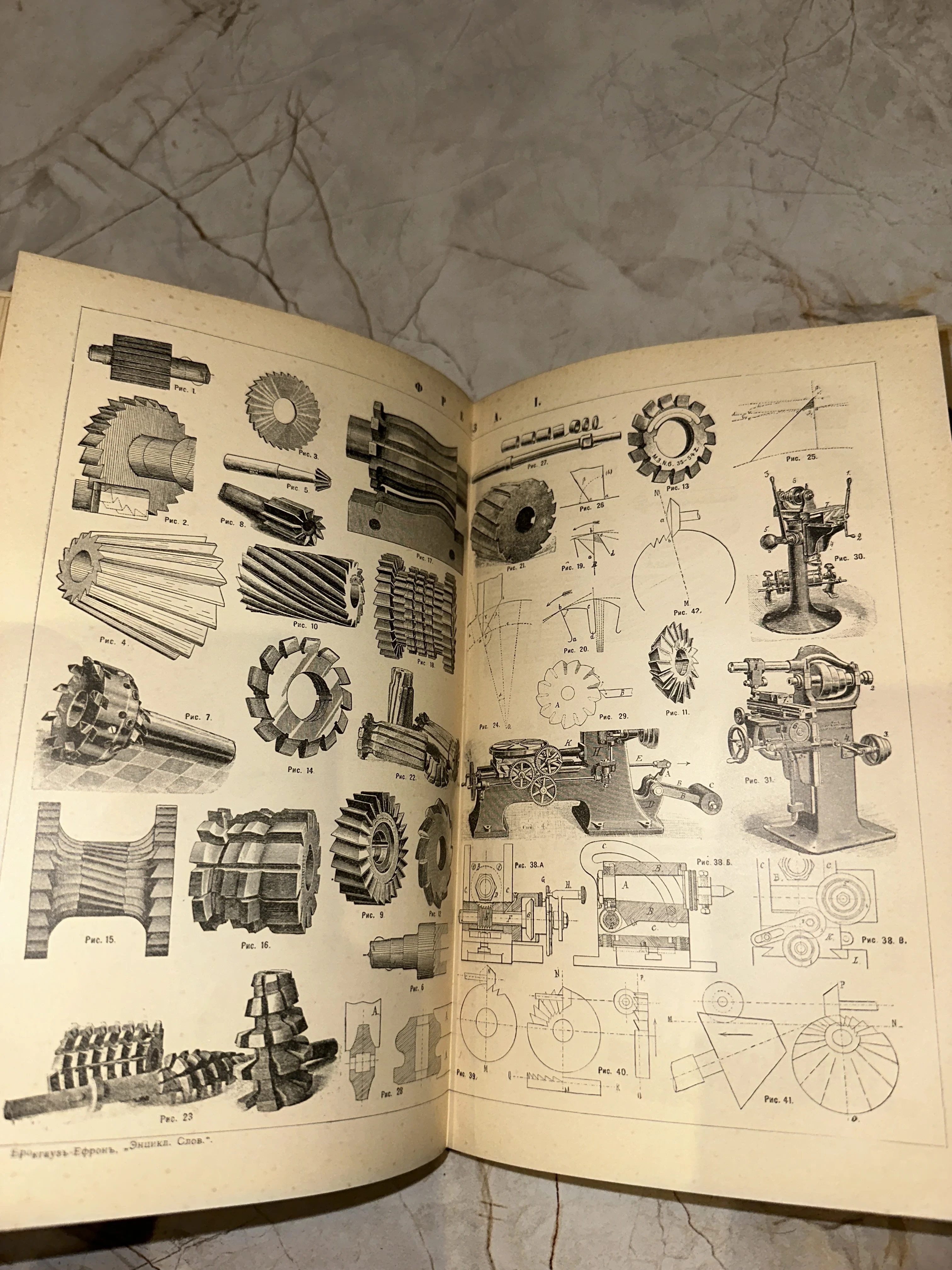 Этот редкий разворот из легендарного Энциклопедического словаря Брокгауза и Ефрона представляет собой шедевр технической графики рубежа XIX–XX веков. На пожелтевших от времени страницах запечатлены детальные схемы фрез и механизмов, передающие дух эпохи индустриального прогресса. Идеальный экземпляр для ценителей книжного антиквариата и истории инженерного искусства.