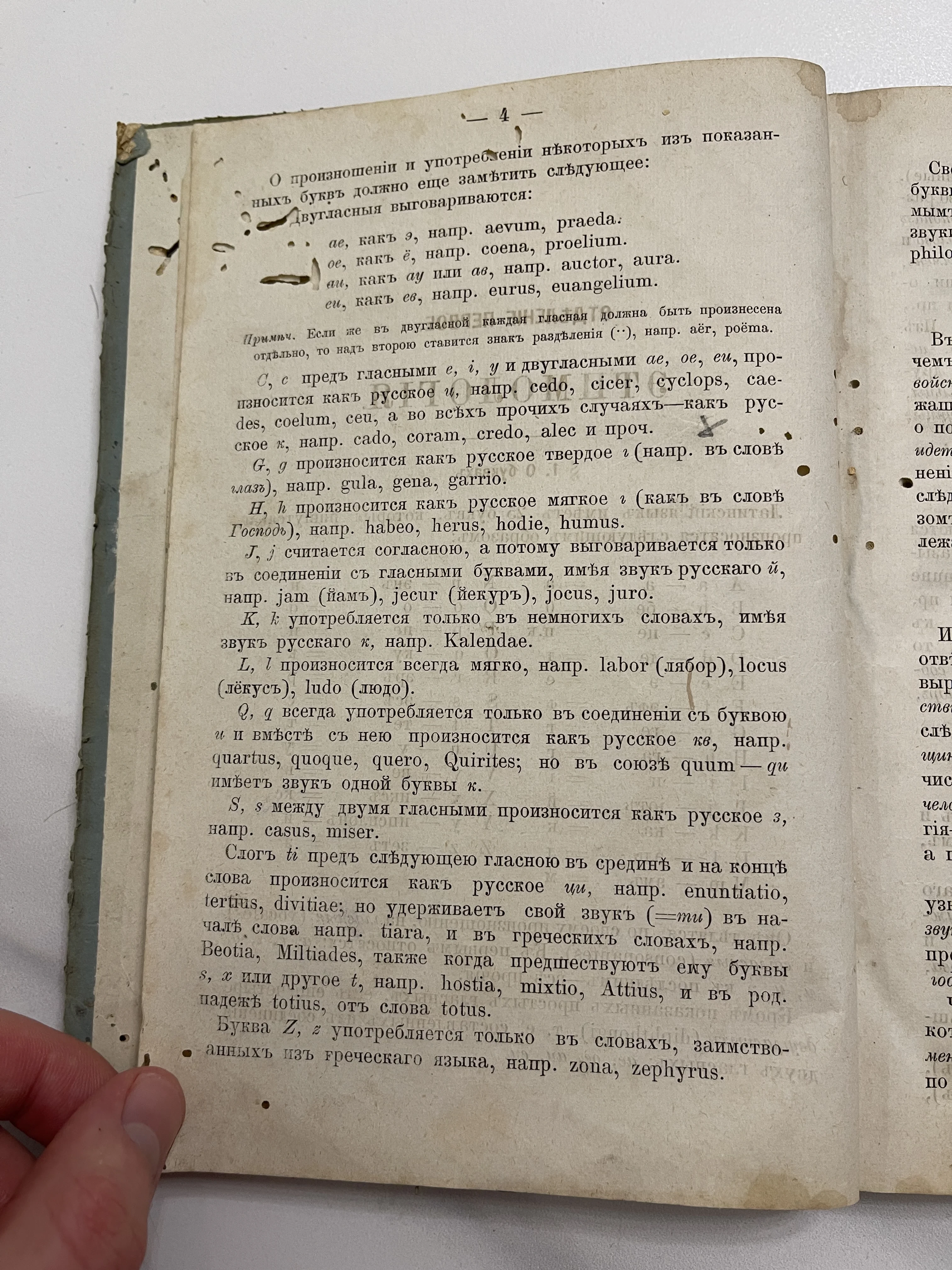Уникальный образец дореволюционной учебной литературы, посвященный фонетике латинского языка. Пожелтевшая бумага с благородной патиной времени и характерными следами бытования передает атмосферу классического образования прошлых веков. Текст, набранный старым шрифтом, станет прекрасным дополнением коллекции антикварной букинистики или тематического интерьера.