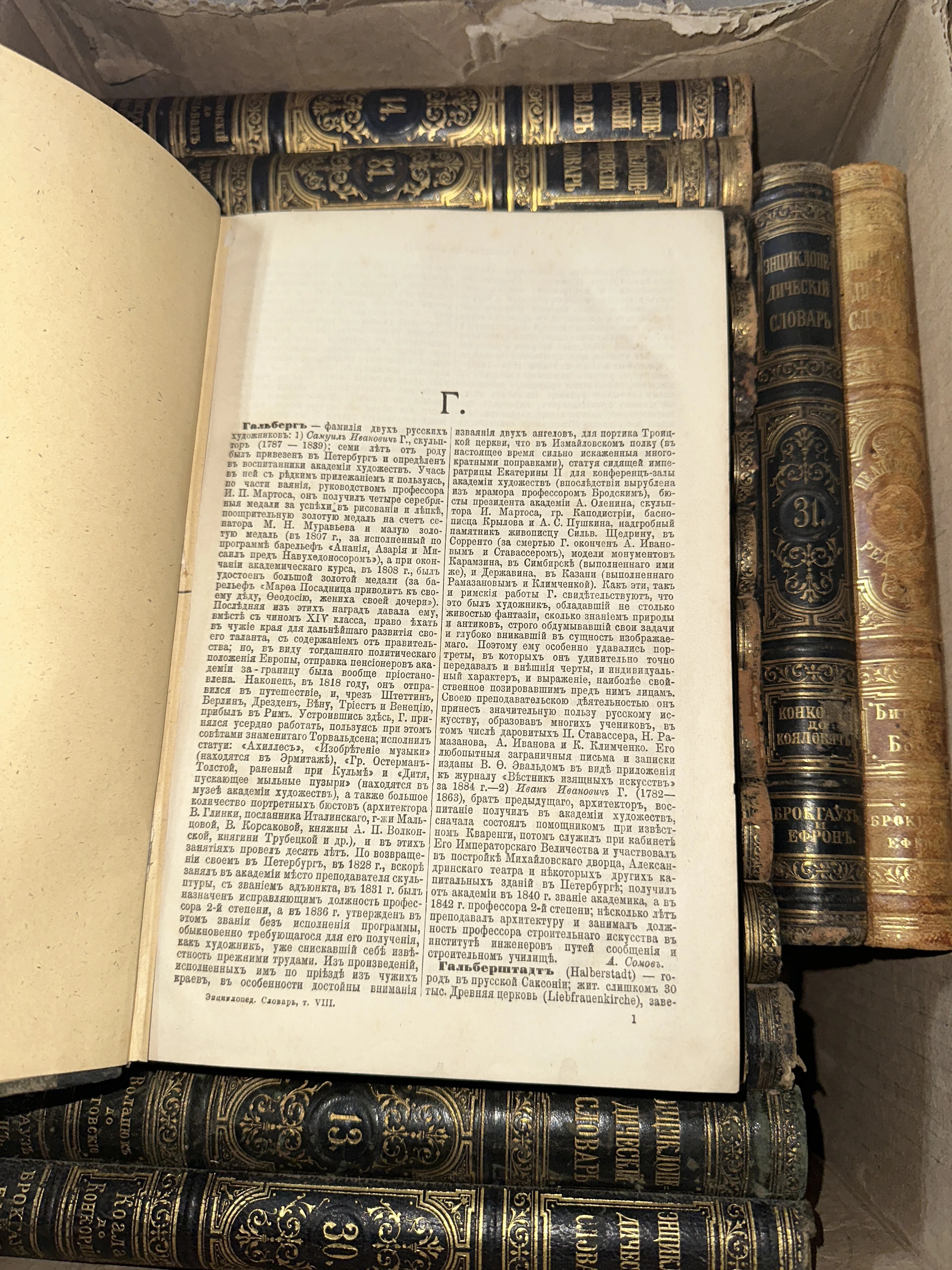 Перед вами легендарный Энциклопедический словарь Брокгауза и Ефрона — эталон научного книгоиздания конца XIX века. Благородная патина на пожелтевших страницах и изысканные кожаные корешки с золотым тиснением создают неповторимую атмосферу классического кабинета. Эти тома сохранили четкость печати и станут центральным элементом коллекции любого библиофила.