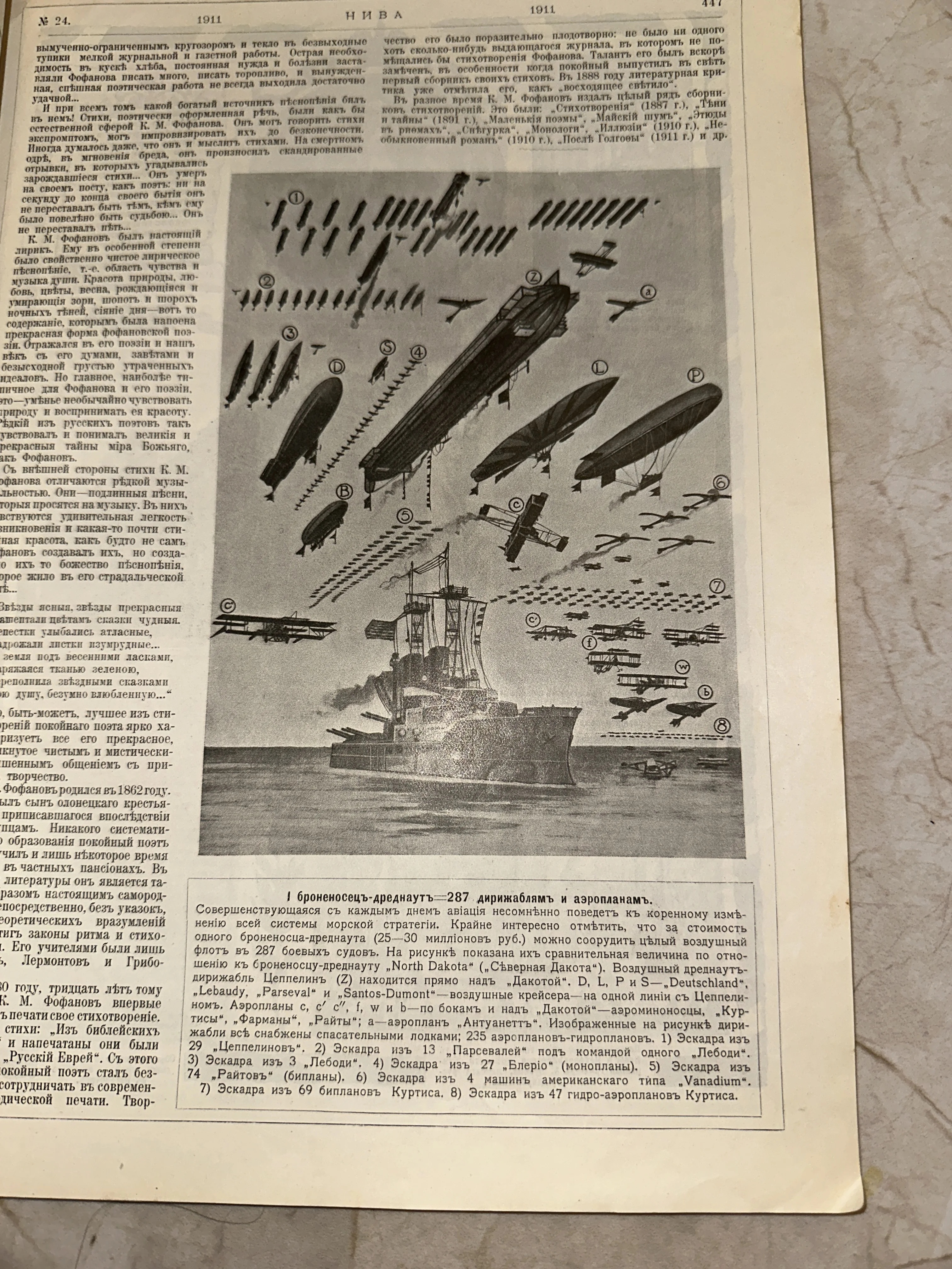 Броненосец против авиации: страница журнала «Нива», 1911 год