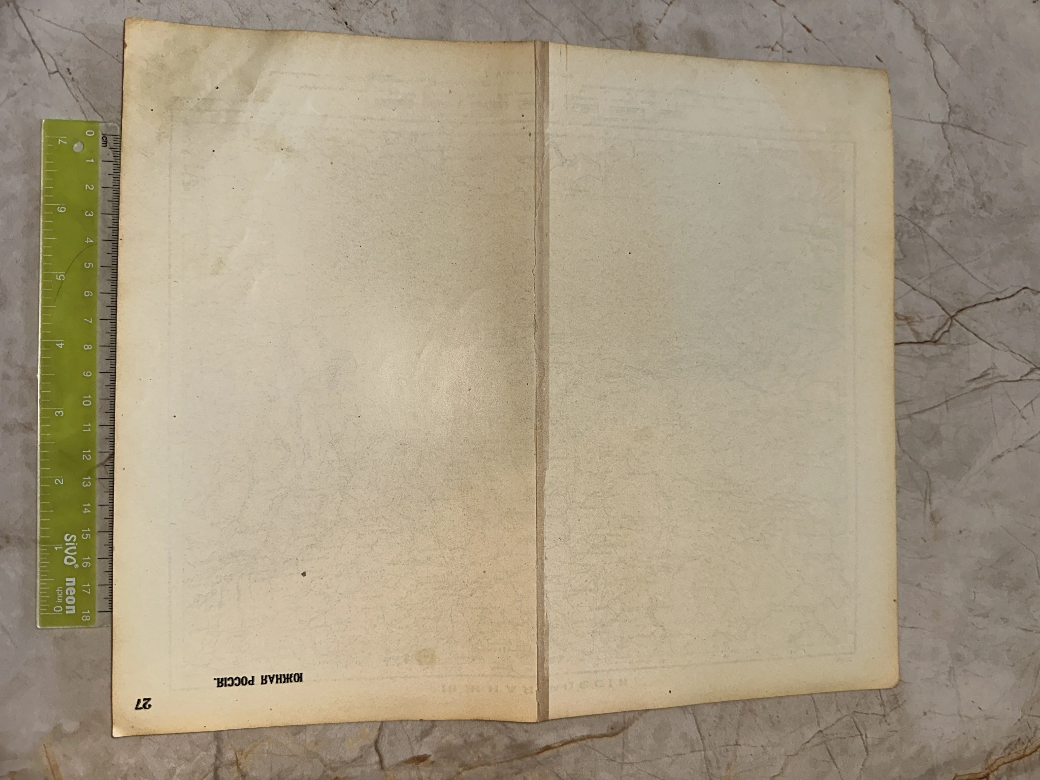 Подлинный типографский разворот из исторического издания с заголовком «Южная Россия». Благородная патина времени и характерное пожелтение бумаги подчеркивают аутентичность этого картографического артефакта, идеально подходящего для оформления интерьера или частной коллекции.
