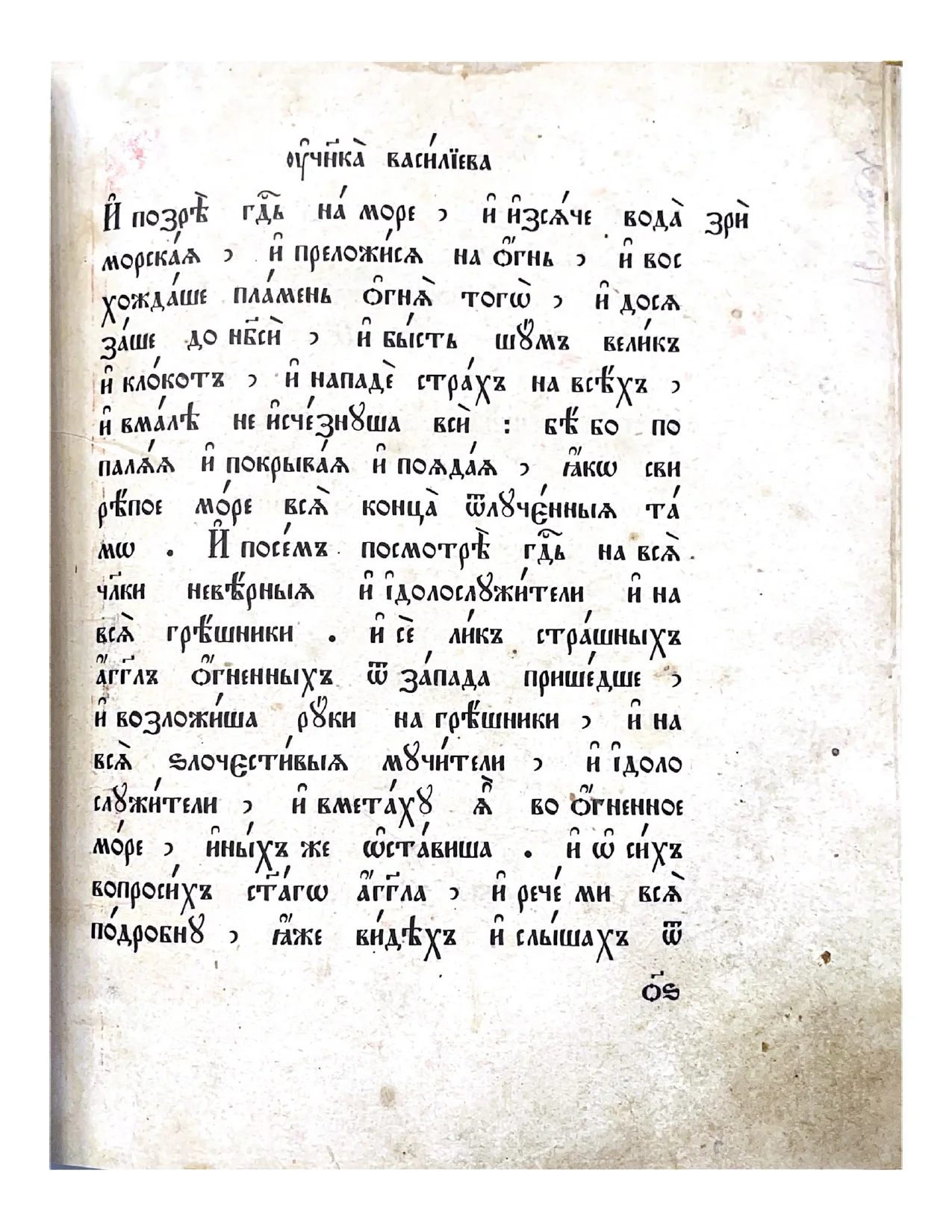 Старинная печатная страница на церковнославянском языке с черным шрифтом и диакритическими знаками.