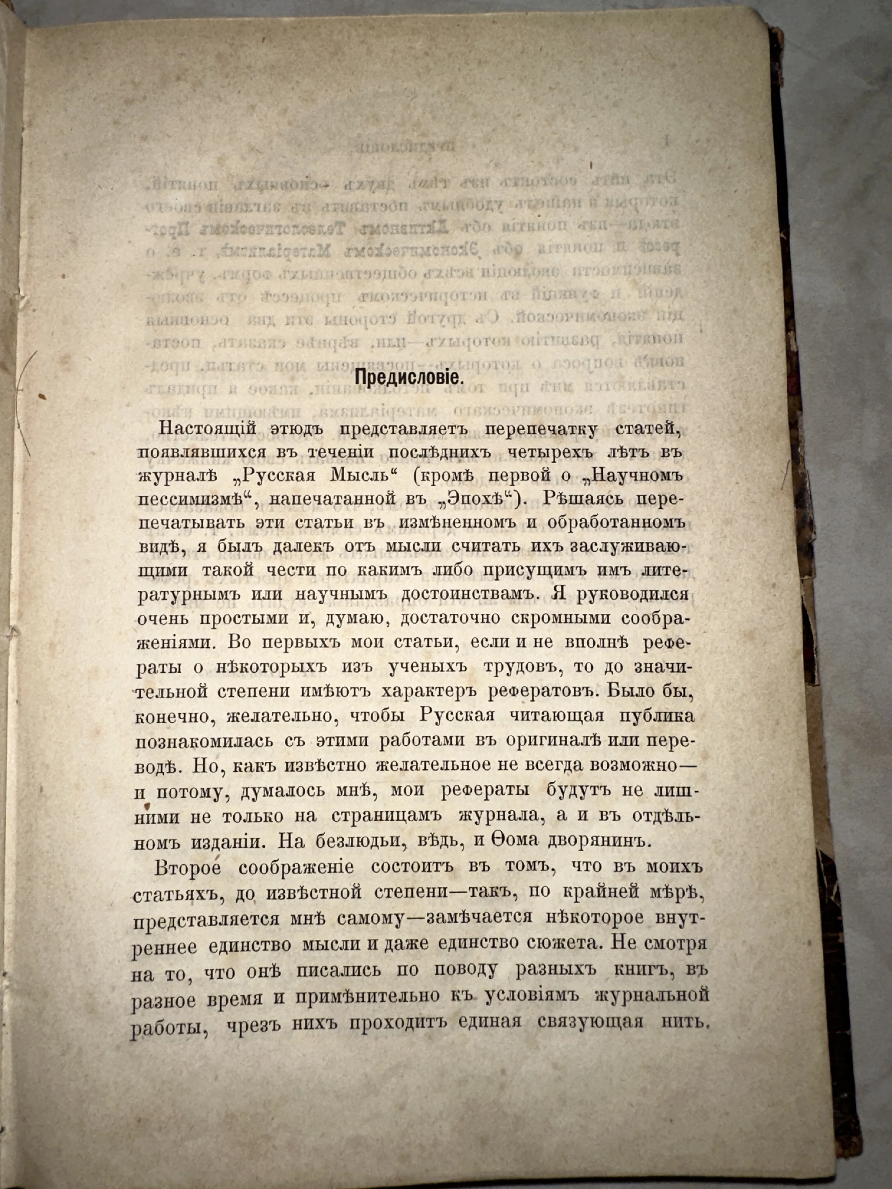 Старинная книжная страница с заголовком «Предисловіе», напечатанная дореволюционным шрифтом на плотной бумаге с признаками старения.