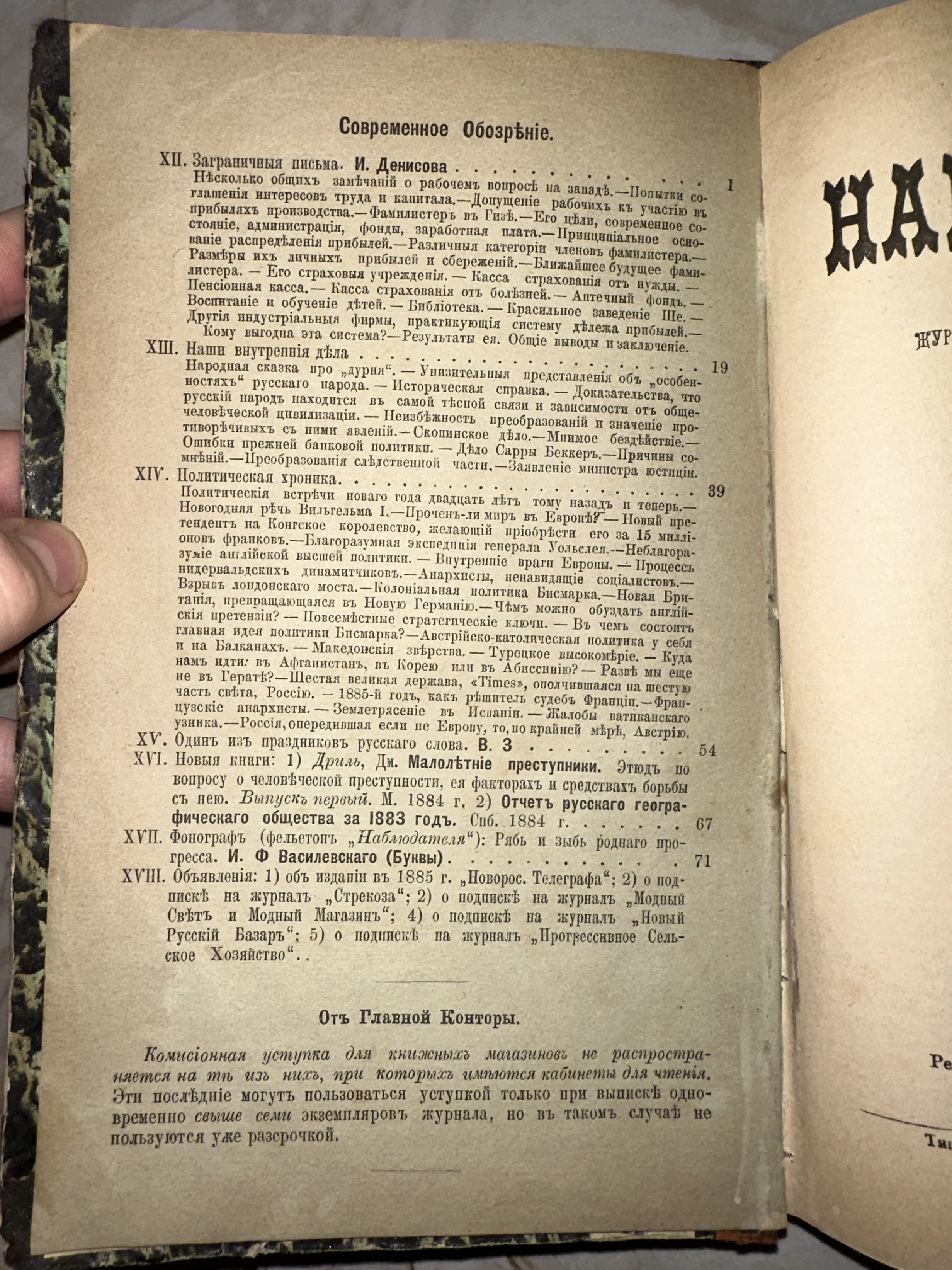 Разворот старинной книги с текстом на дореволюционном русском языке, раздел Современное обозрение.