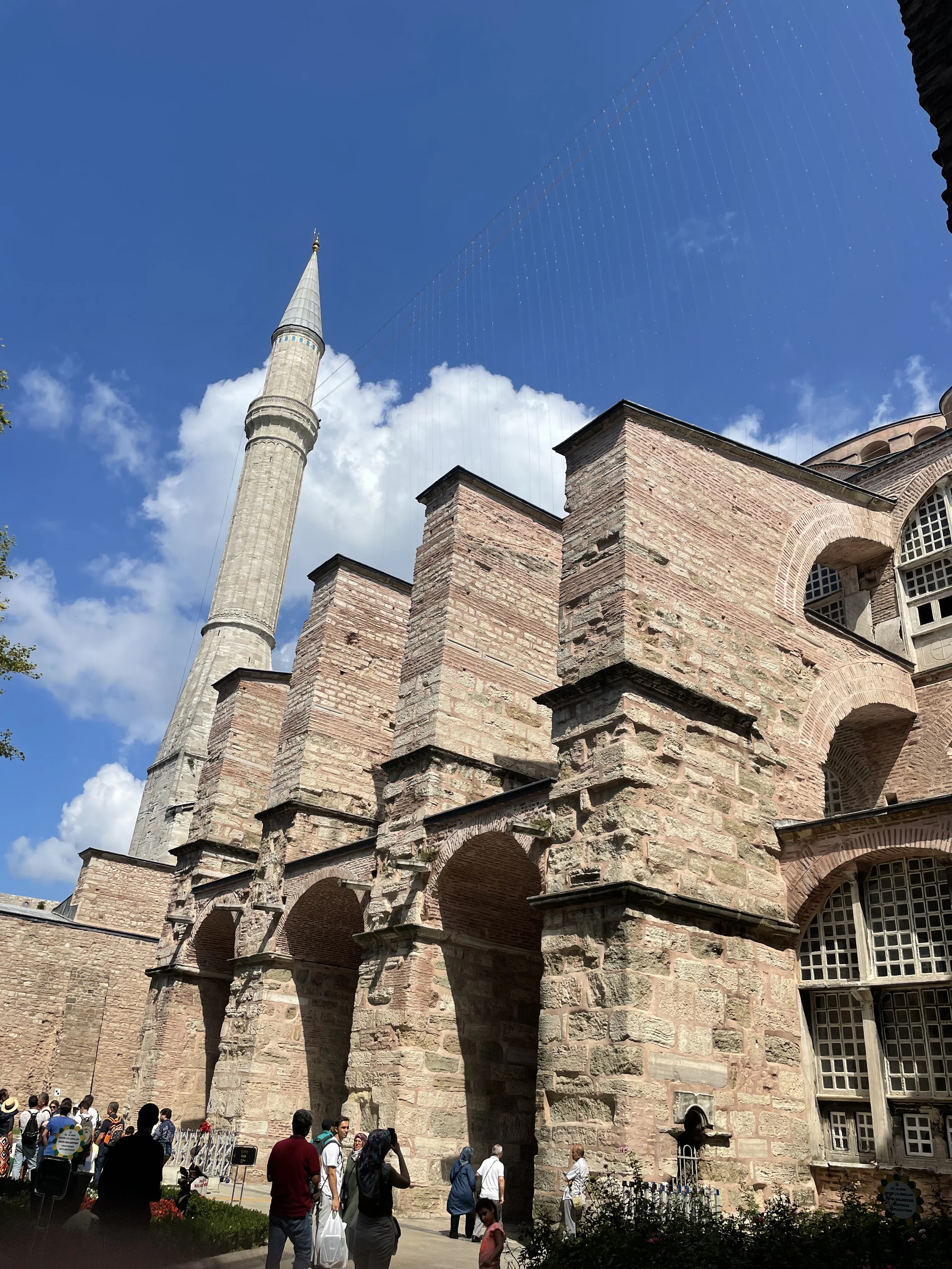 Монументальные стены из древнего камня и кирпича хранят в себе тысячелетнюю историю, подчеркнутую мощными контрфорсами и устремленным ввысь минаретом. Игра света на фактурной кладке передает атмосферу вневременного величия этого шедевра мировой архитектуры. Фотография детально демонстрирует масштаб и инженерную сложность легендарного сооружения.