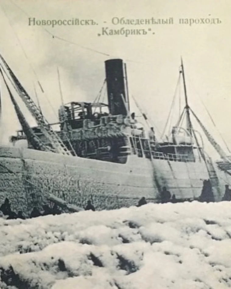 Обледенелый пароход «Камбрик» в Новороссийске