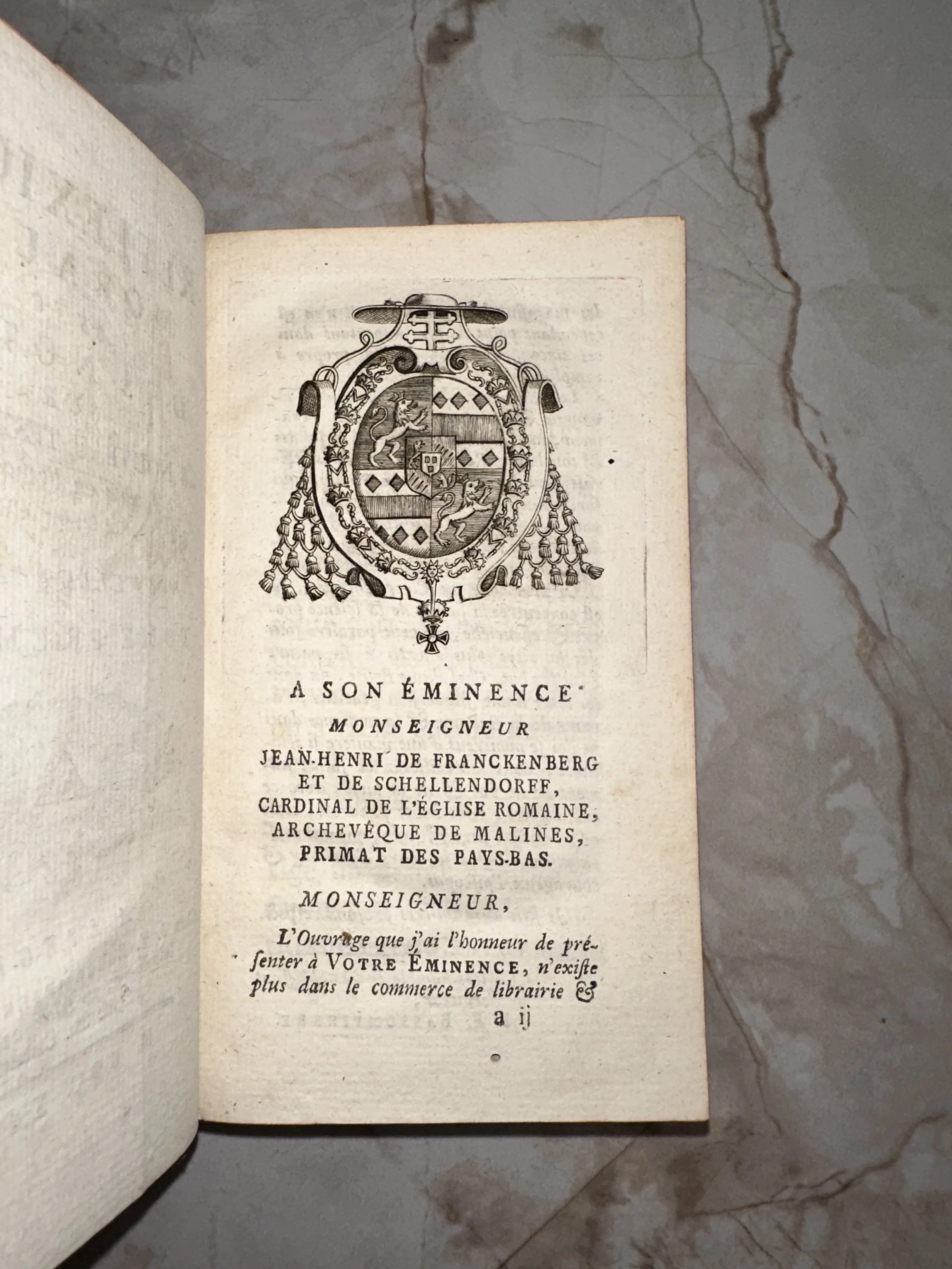 Страница с посвящением кардиналу Франкенбергу, XVIII век