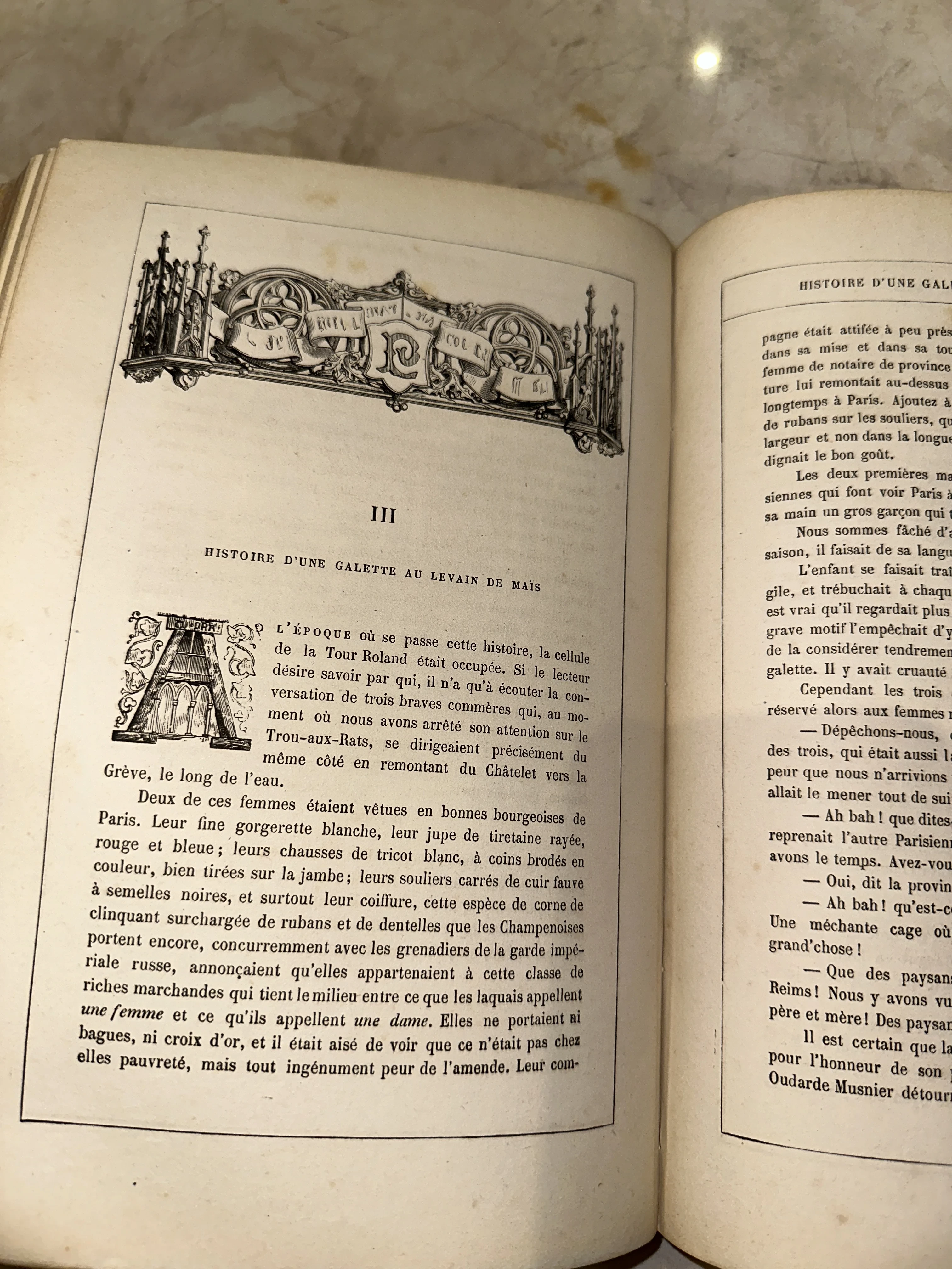 Изысканный образец европейского книгопечатания с детально проработанной готической заставкой и орнаментированной буквицей. Благородная патина на страницах и классическая типографика создают неповторимую атмосферу старинной библиотеки. Прекрасно сохранившийся экземпляр, представляющий высокую художественную ценность для коллекционеров антикварной литературы.