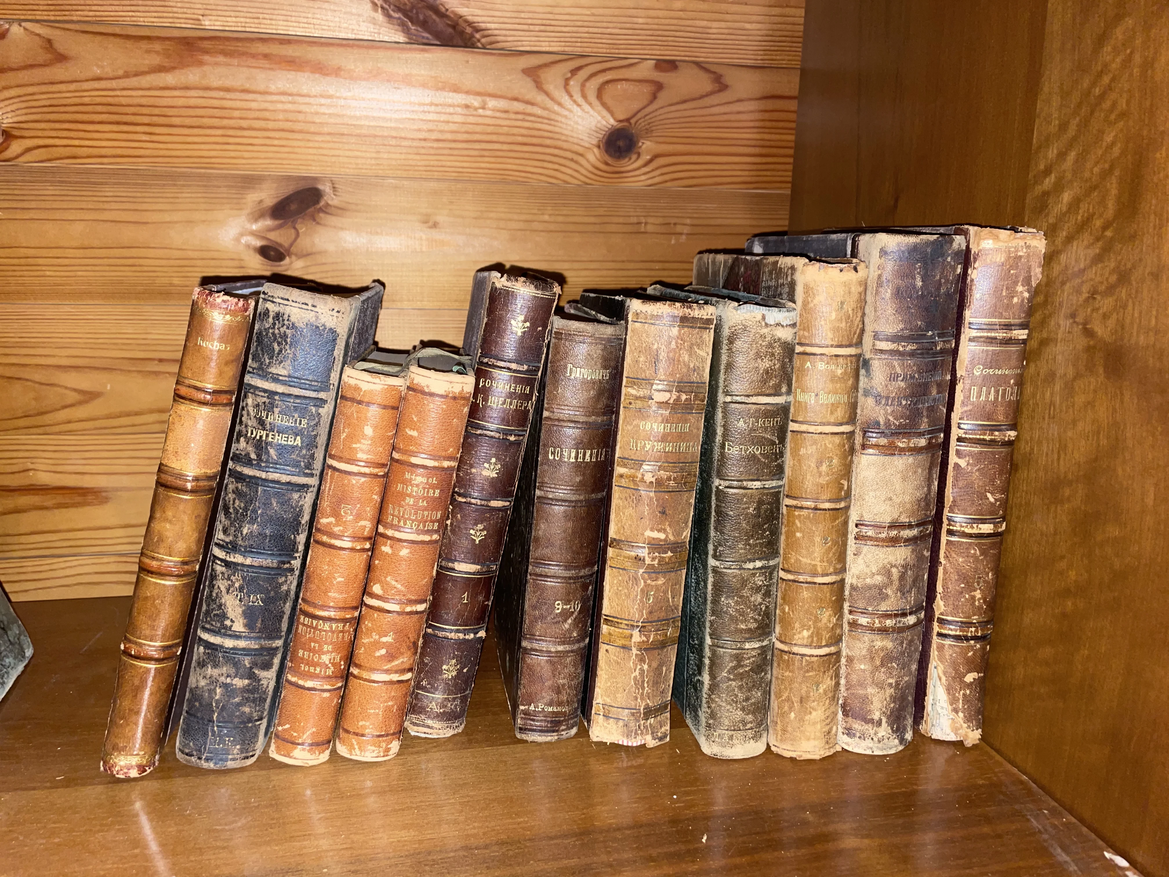 Собрание антикварных книг в кожаных переплетах