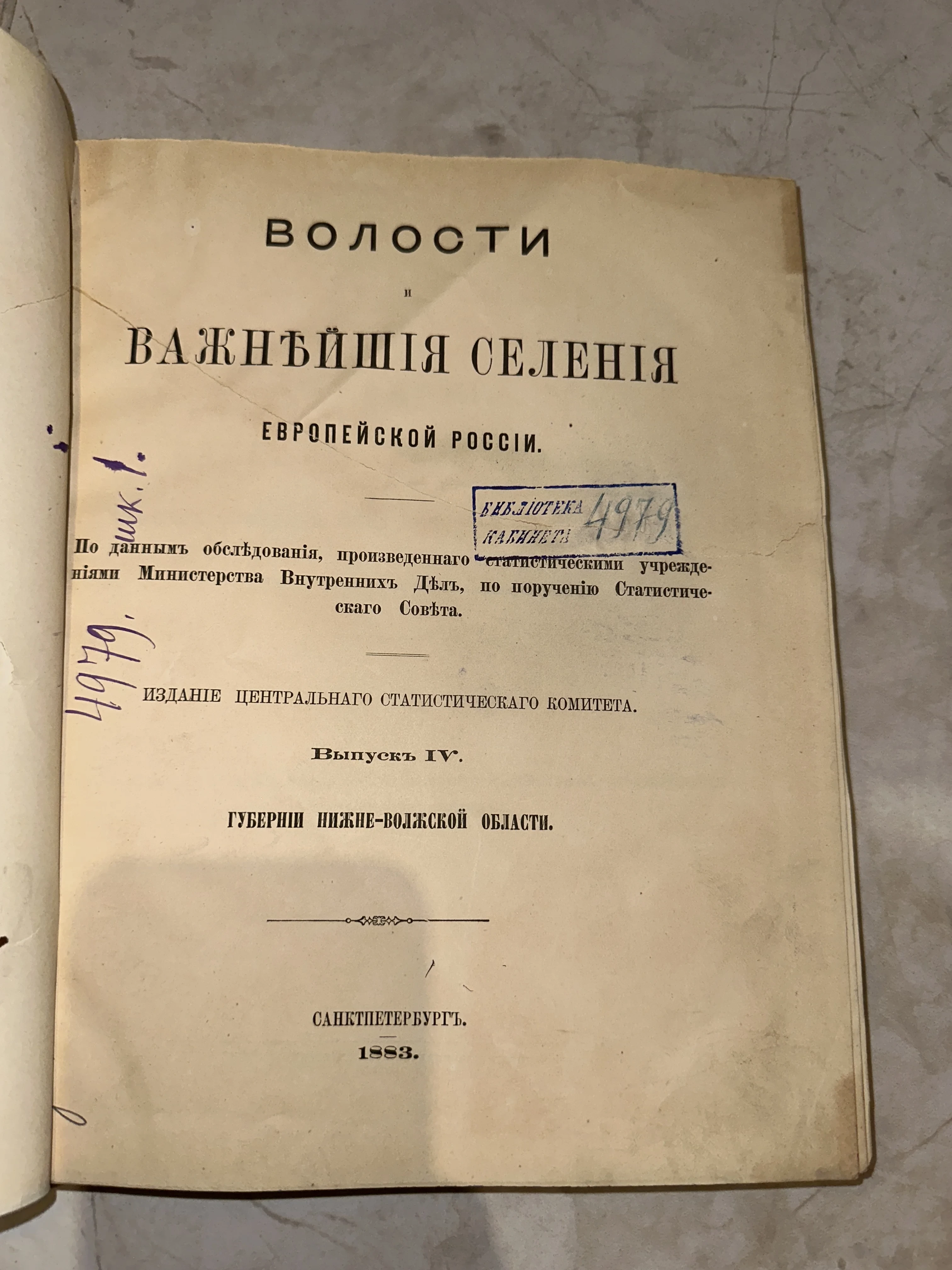 Фундаментальное статистическое издание XIX века, напечатанное в Санкт-Петербурге по заказу Министерства Внутренних Дел. Страницы несут на себе благородные следы времени в виде легкой патины и архивных штампов, подчеркивающих историческую подлинность и коллекционную значимость этого экземпляра. Ценная находка для исследователей генеалогии и истории Нижне-Волжской области.
