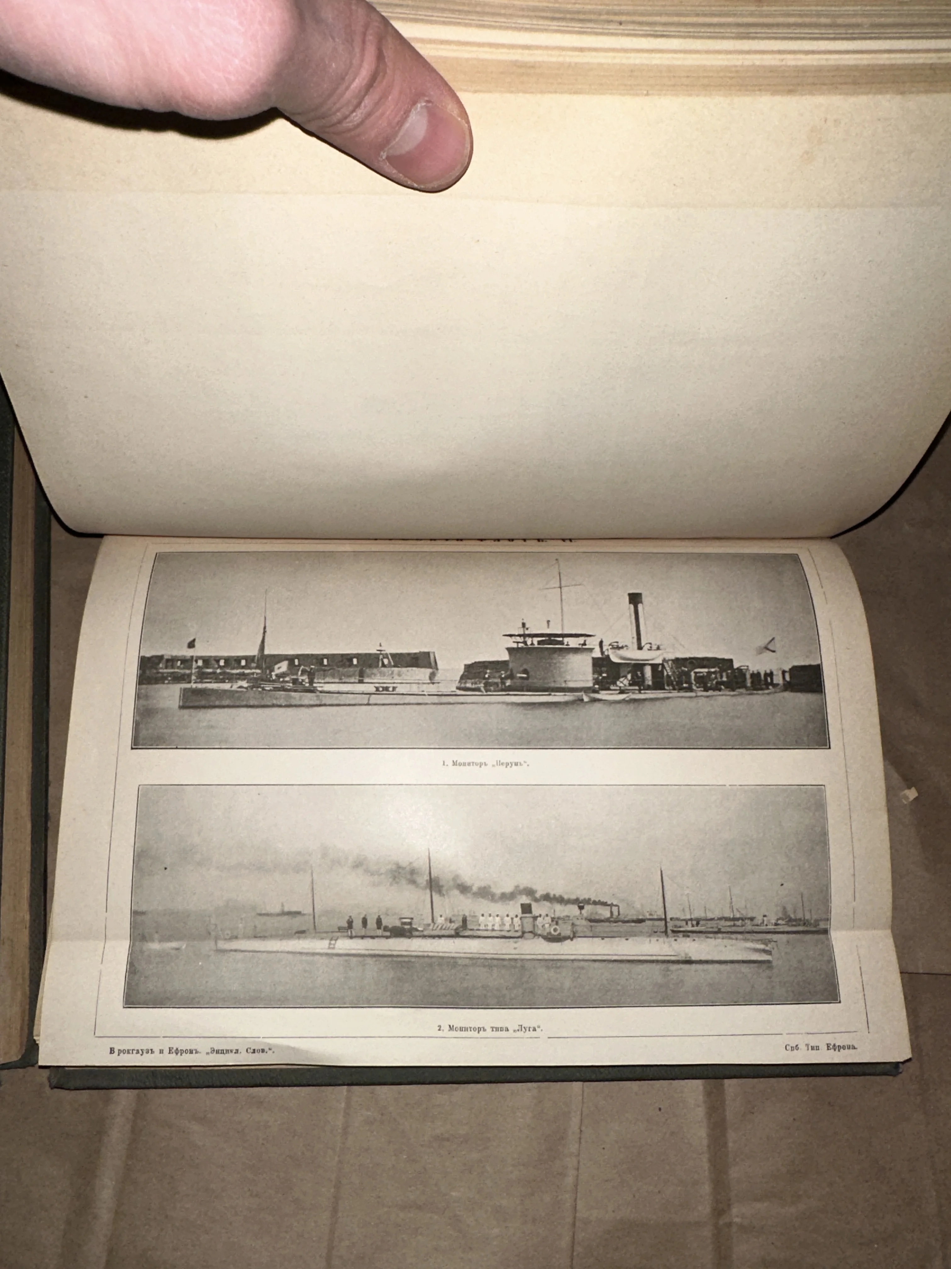 Перед вами подлинная страница из легендарного энциклопедического словаря Брокгауза и Ефрона с детализированными изображениями военных мониторов. Иллюстрация выполнена в технике классической печати конца XIX века, передавая величественный облик судов и дух отечественного кораблестроения. Прекрасная сохранность бумаги и четкость линий делают этот экземпляр ценной находкой для коллекционеров маринистики.