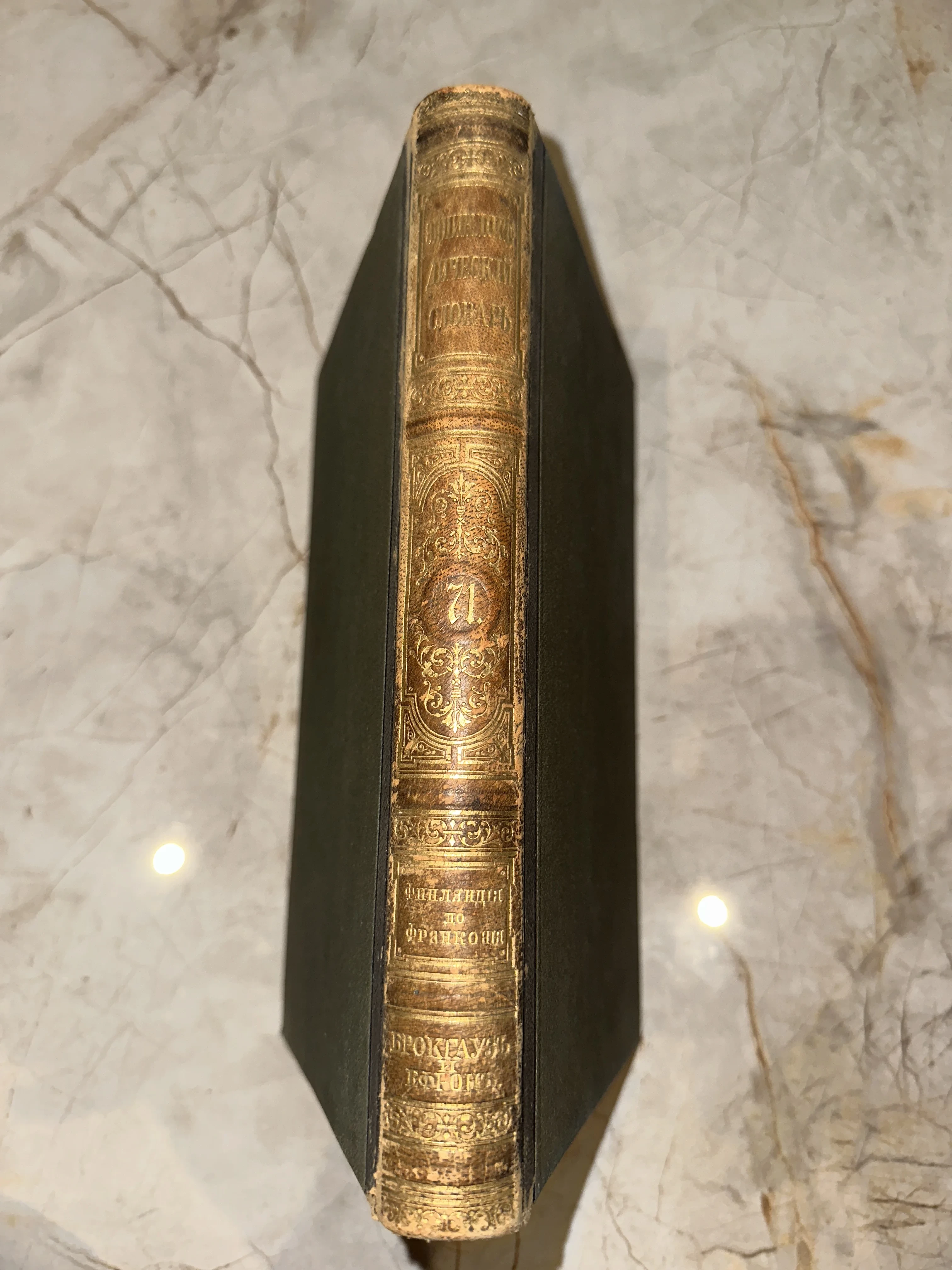 Перед вами легендарный памятник книгоиздания — том знаменитого словаря Брокгауза и Ефрона в классическом полукожаном переплете. Изящное золотое тиснение и благородная патина времени на корешке подчеркивают статусность издания, способного стать центральным украшением кабинета или частной библиотеки. Книга сохранила очарование ушедшей эпохи и является бесценным источником знаний конца XIX — начала XX века.